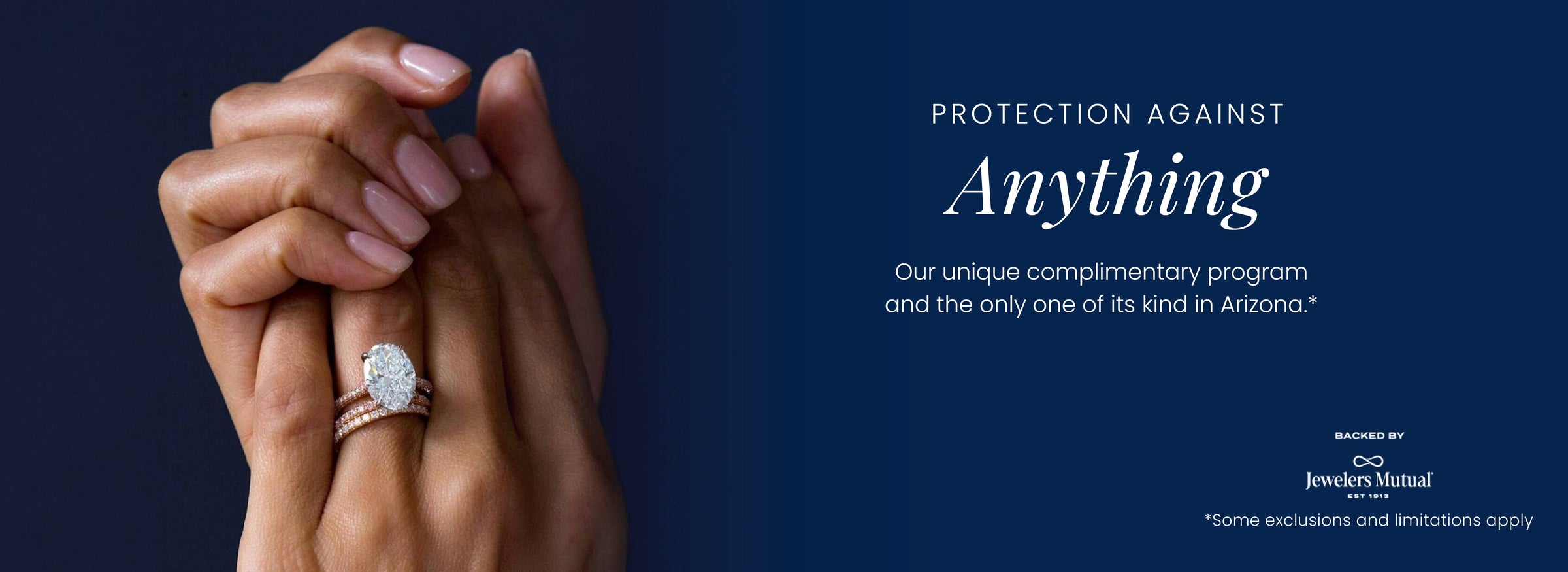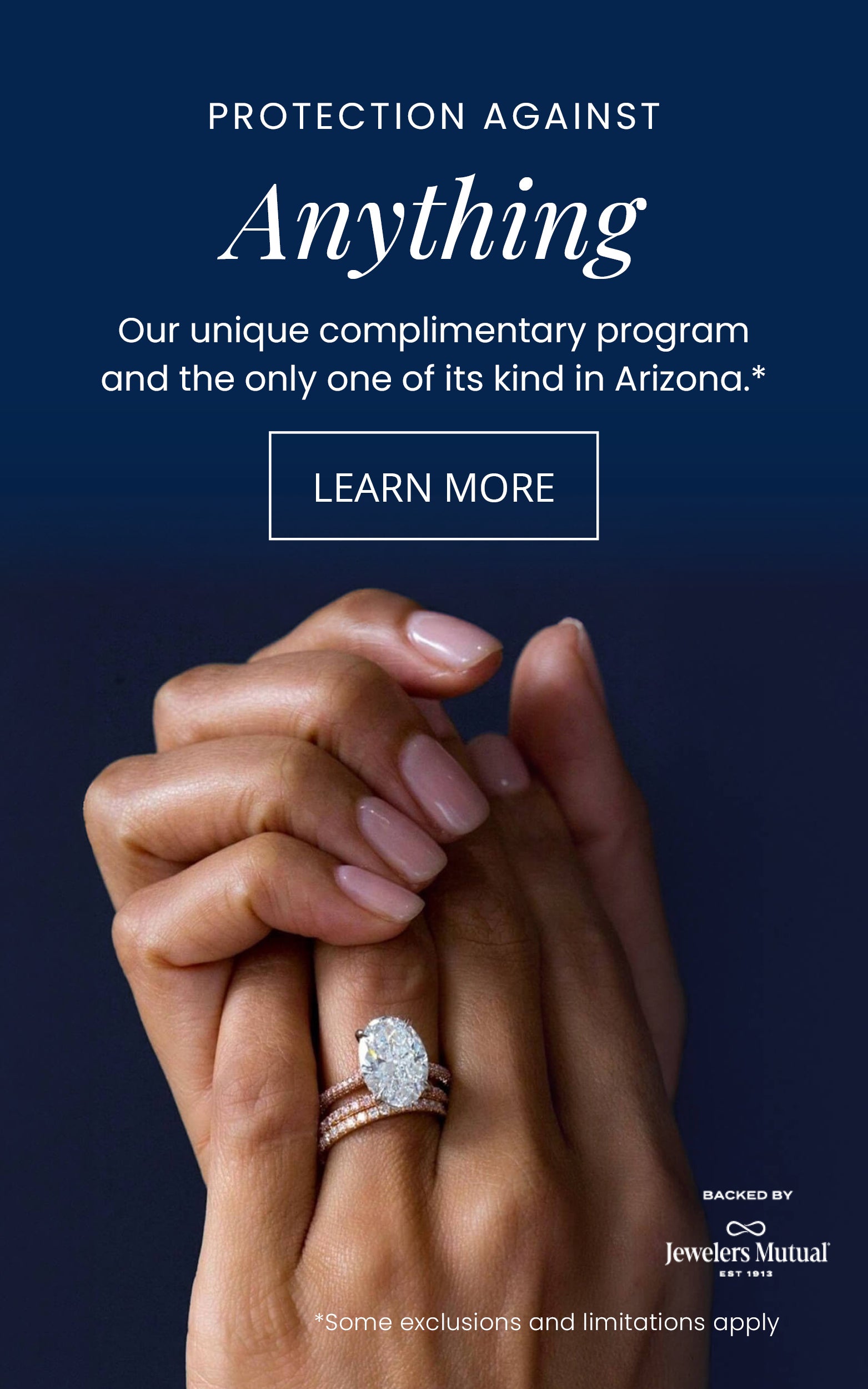 *Some exclusions and limitations apply, and not all item types or values are eligible for benefits. Eligible purchases $500-$250,000. Ask our team for specific benefit details. Anything promise is offered by The Diamond Guys. Comprehensive benefits are backed by Jewelers Mutual Insurance Company.
