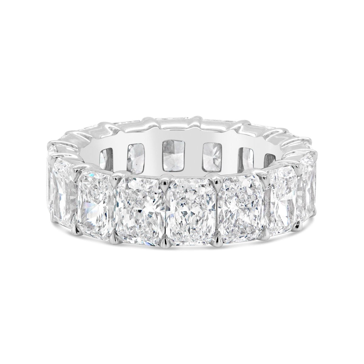 This spectacular eternity band features 16 laboratory-grown radiant-cut diamonds with an impressive total carat weight of 7.95 carats. The laboratory-grown diamonds boast excellent quality specifications: