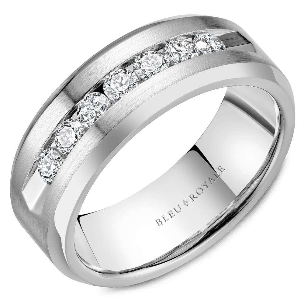 Bleu Royale Men's Diamond Wedding Band with Sandpaper Center & High Polish Edges - RYL-101WD75
