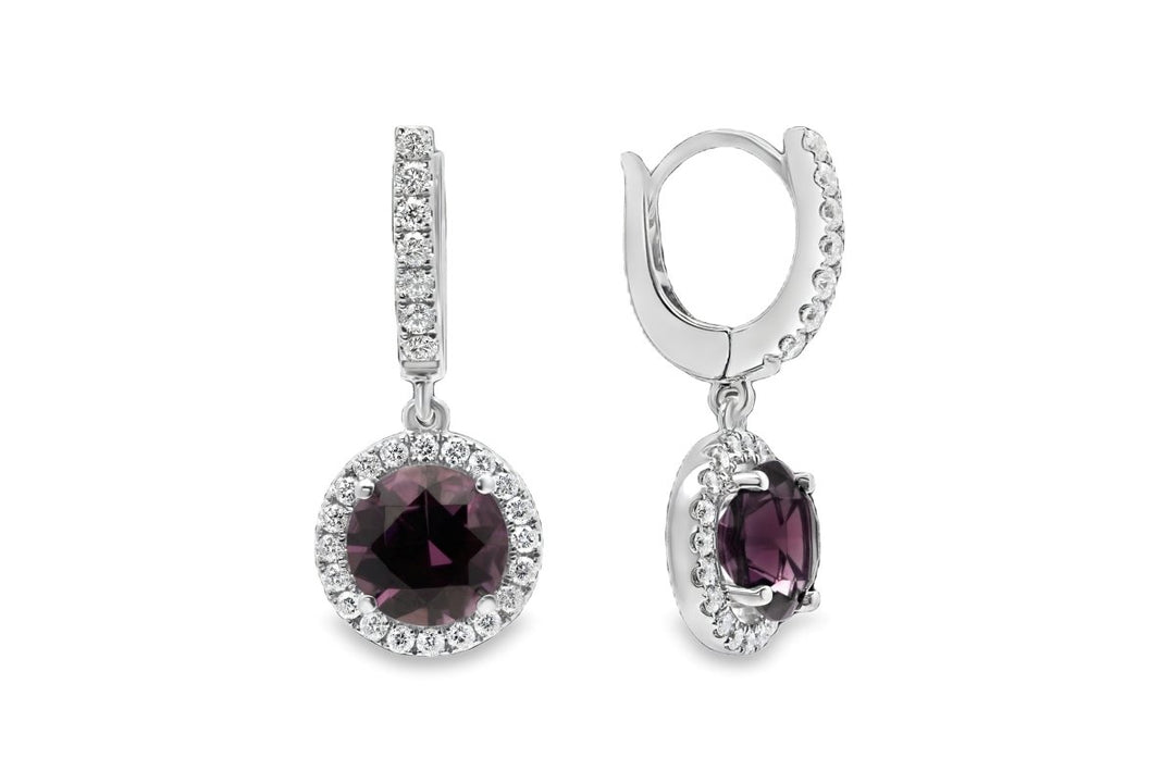 White Gold Diamond & Rhodolite Earrings - CE0116B-RHD