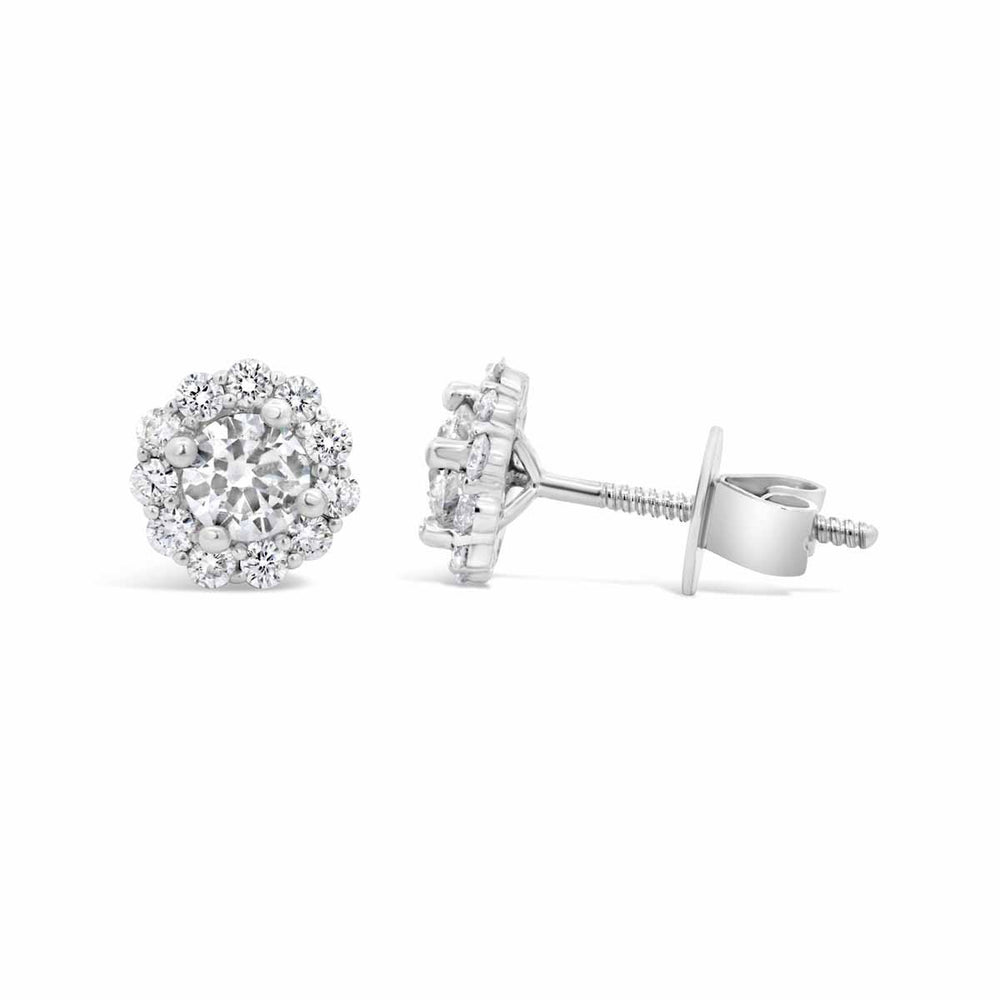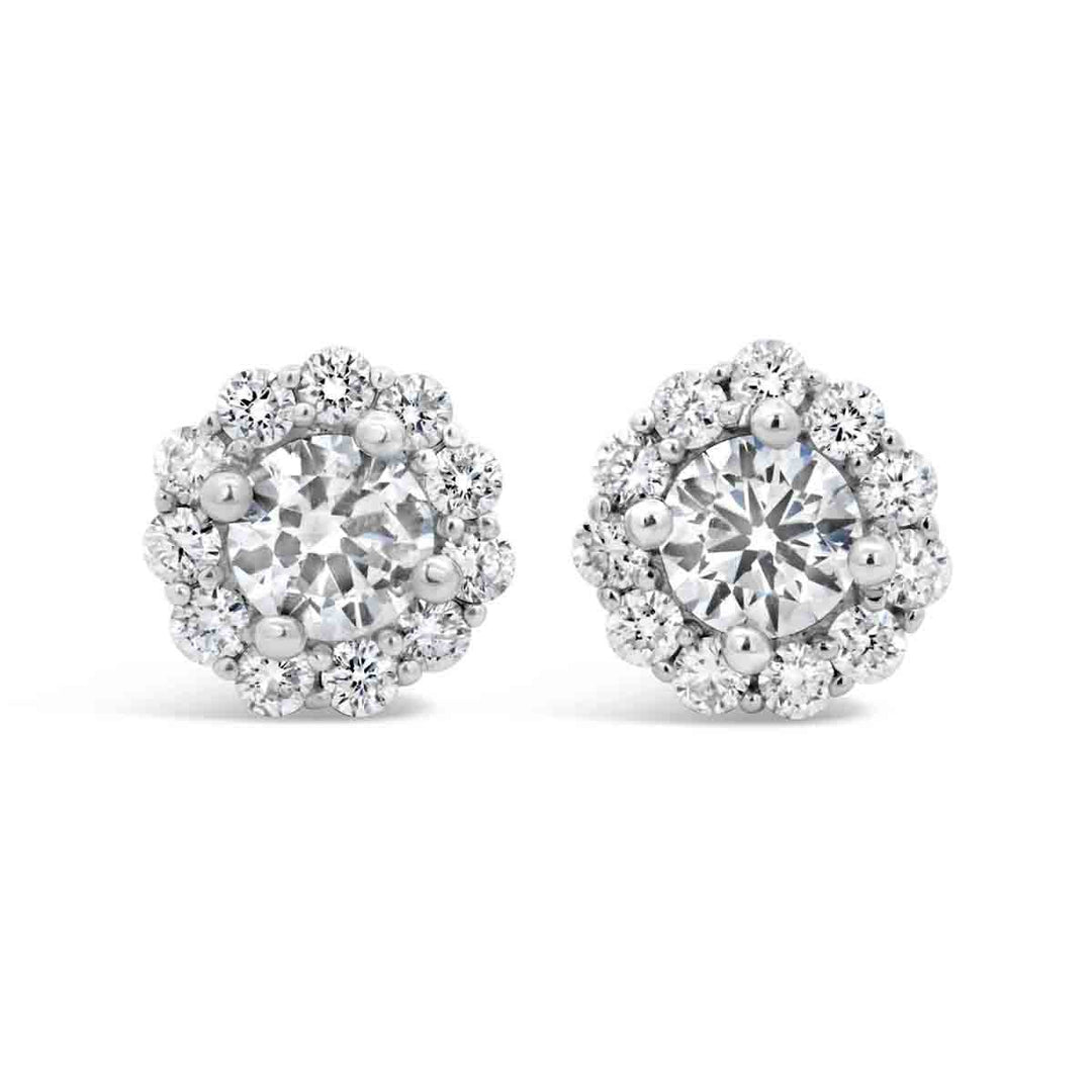 Halo Setting: The halo setting surrounds the center diamond with a ring of smaller diamonds, enhancing the overall sparkle and size of the earrings. This setting is perfect for those who want their diamond studs to make a statement.