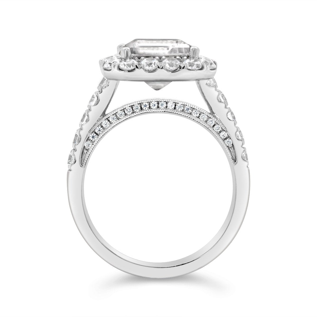 Emerald Cut Halo Diamond Engagement Ring shown with a 3.00 ct. center emerald cut diamond. (Center Diamond Sold Separately)
