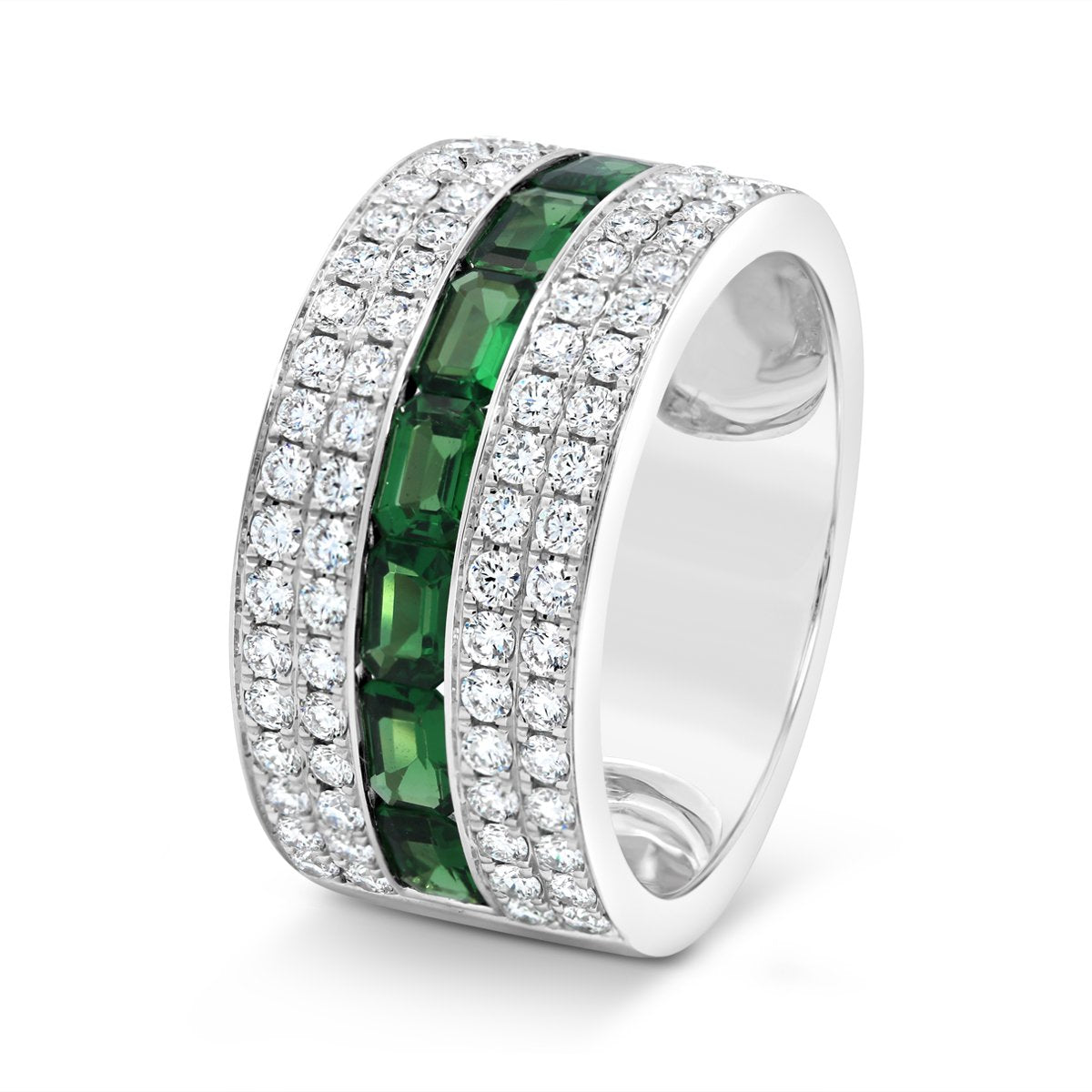 18K White Gold Wide Diamond and Green Garnet Band - SNF6809R