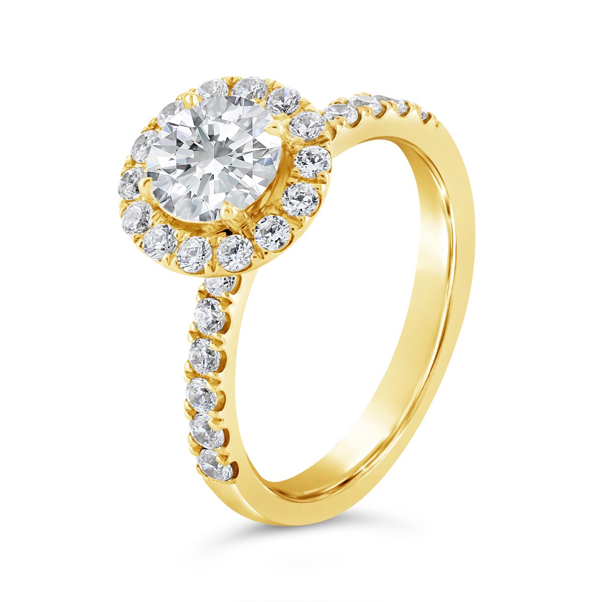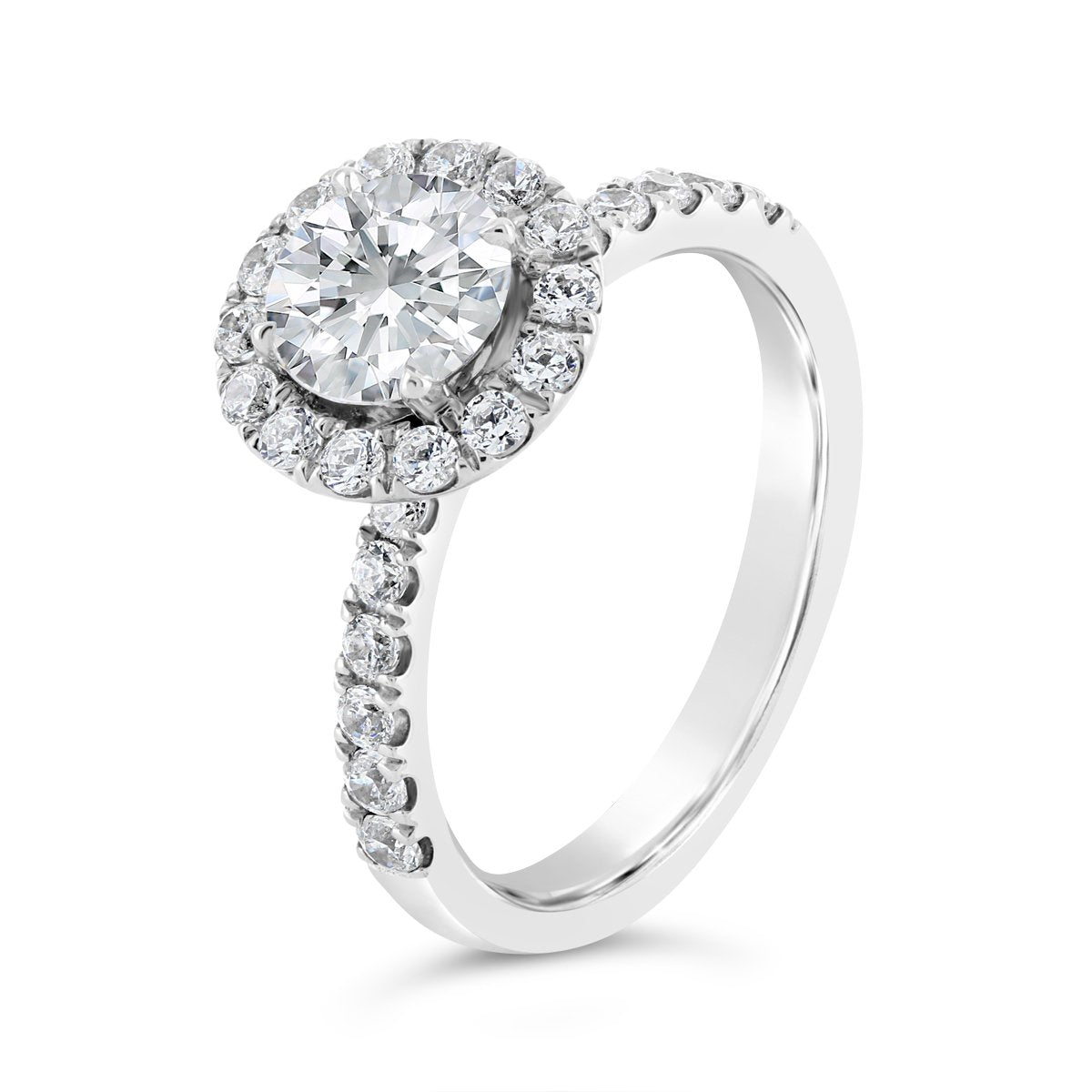 Style No. ACB113 Diamond Halo Engagement Ring Shown with 1ct Round Diamond (Center Diamond Sold Separately)
