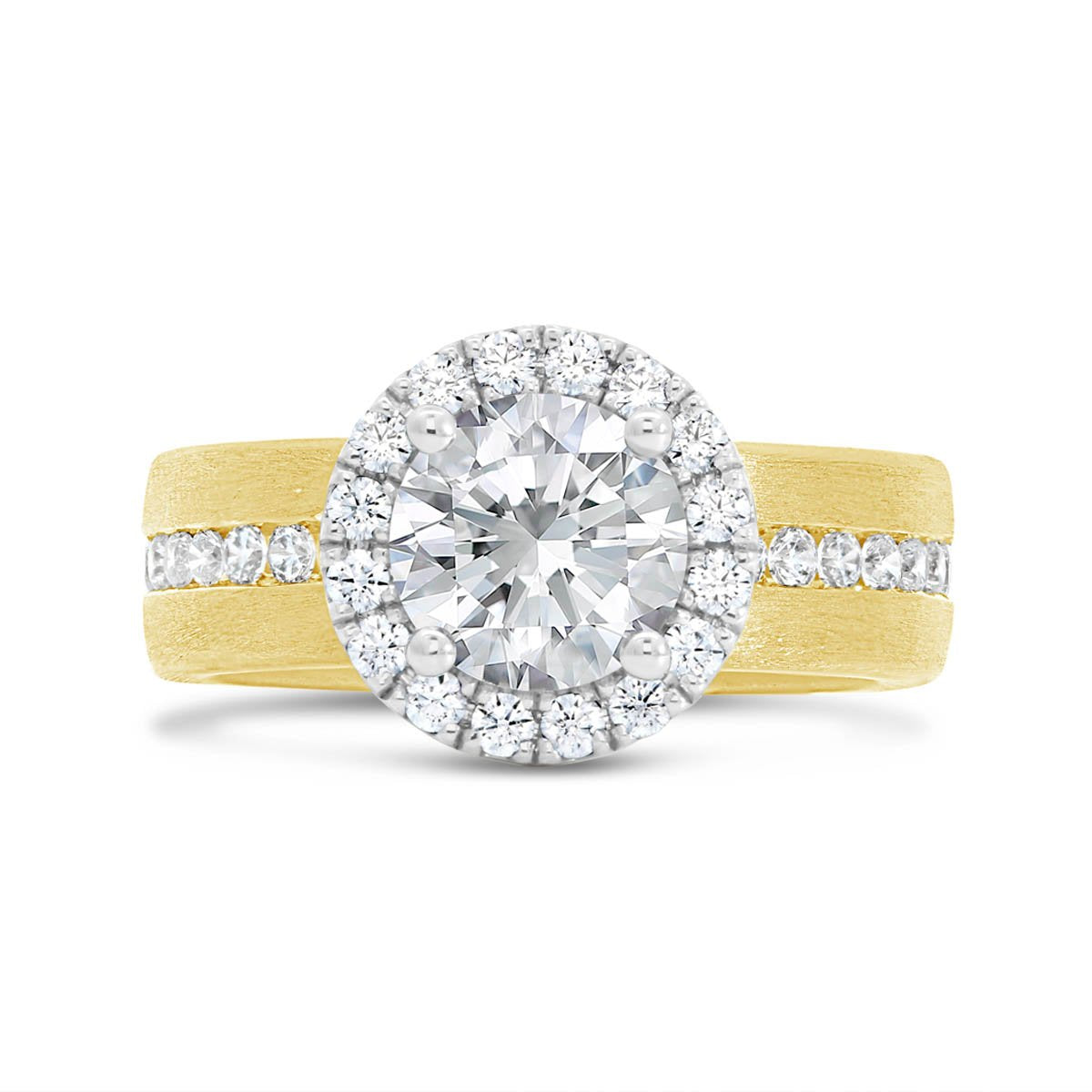 Wide Band Two Tone Halo Engagement Ring - N0551SM