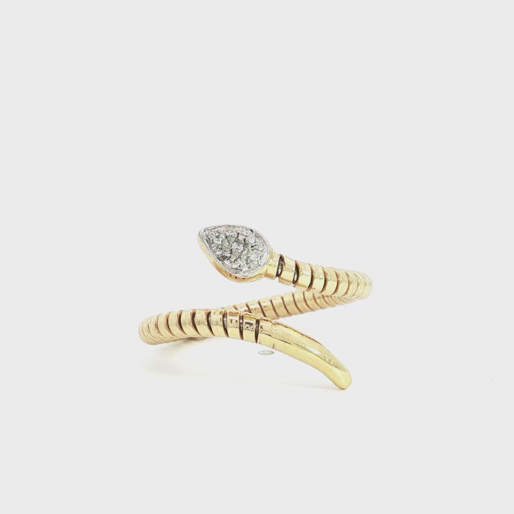 Yellow Gold Italian Pave Diamond Snake Head Flexi Ring - K434881