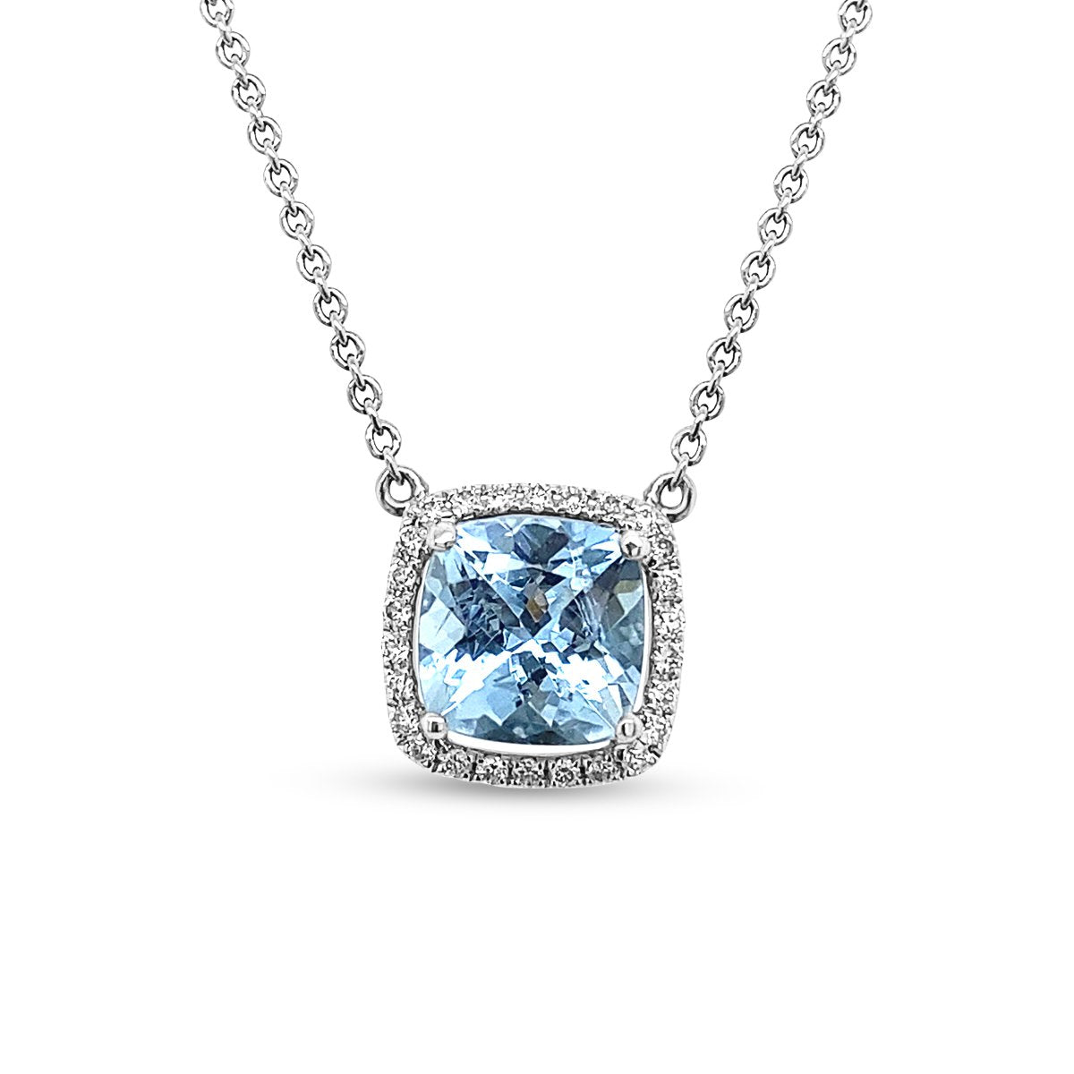 Diamond & Aquamarine Halo Necklace - YJM0192NS