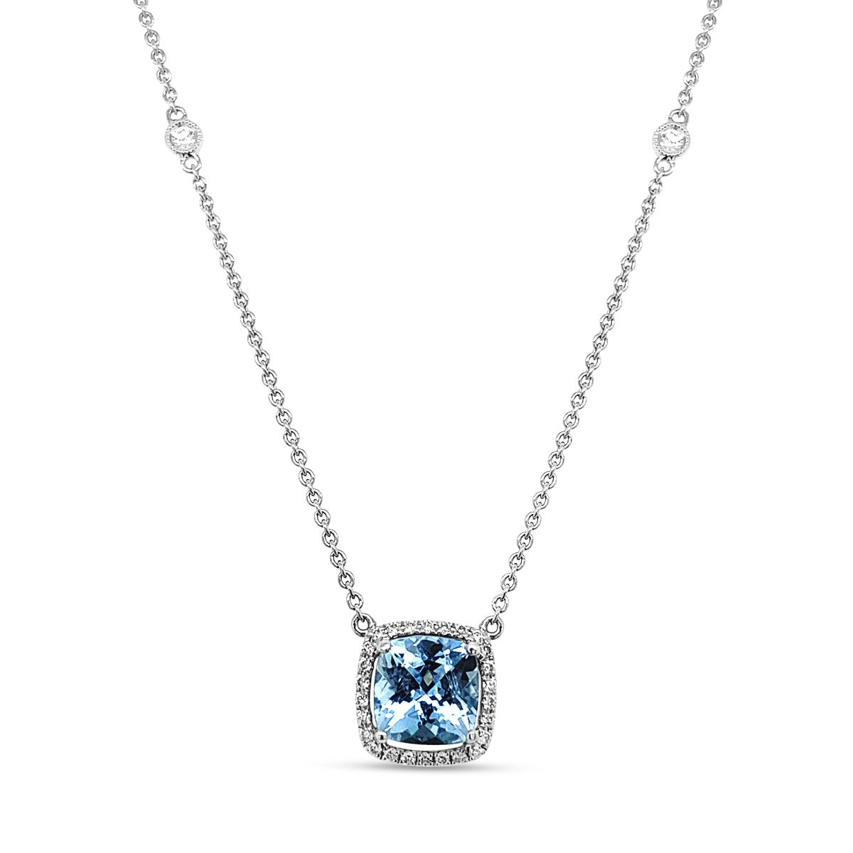Style No. YJM0192NS 18KW Diamond & Aquamarine Necklace