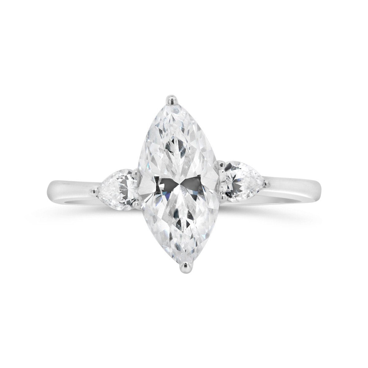 Three Stone Diamond Engagement Ring shown with a 1.50 ct. center marquise diamond. (Center Diamond Sold Separately)