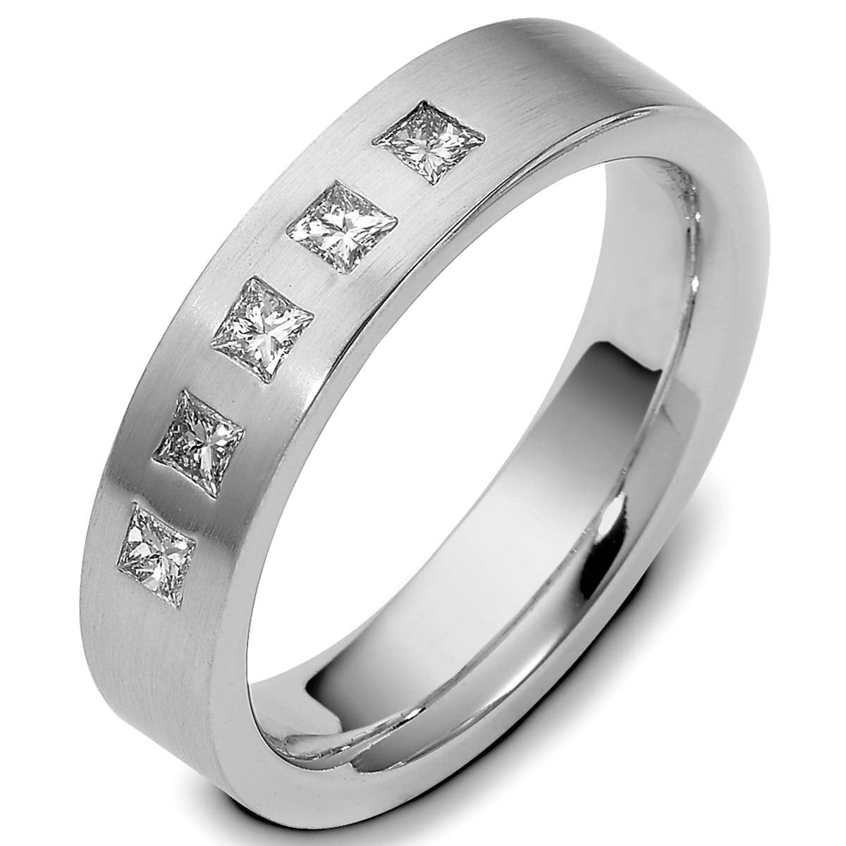 Style No. 1658 Gold Men's 6mm Wide Wedding Band with Princess Cut Diamonds from the Dora Ring Collection