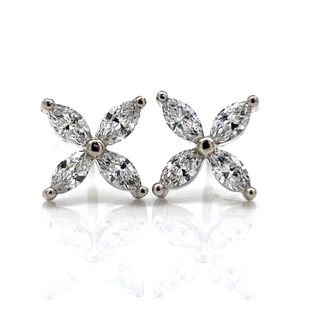 White Gold Lab Grown Diamond Flower Earrings - 85940-LAB