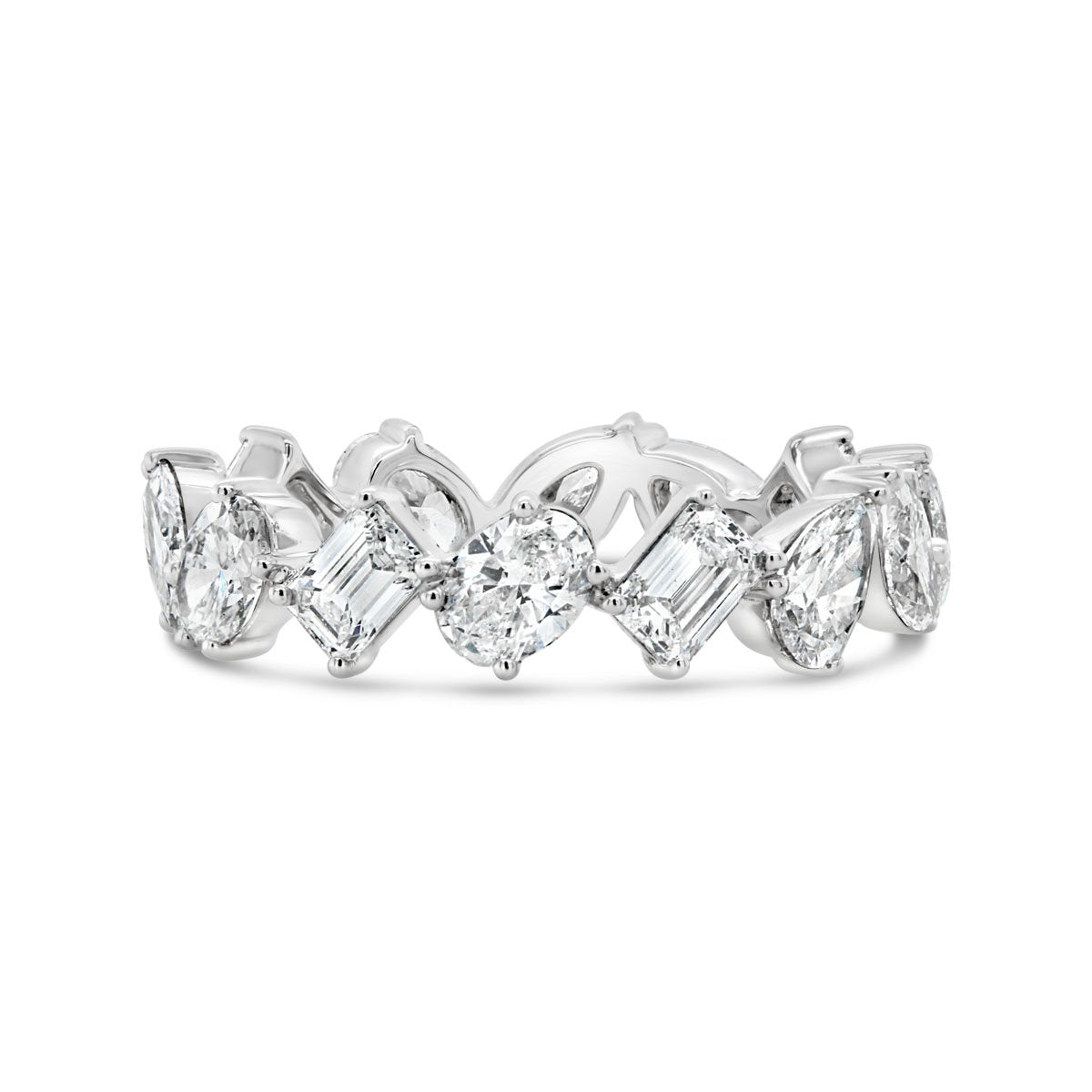 Laboratory Grown Diamond Multishape Eternity Band set with 4 Ovals 0.89ct F VS1, 4 Emerald cut 0.80ct F VS1, 3 Marquise 0.63 CT D VS1, 3 Pear shape diamonds 0.72CT E VVS2