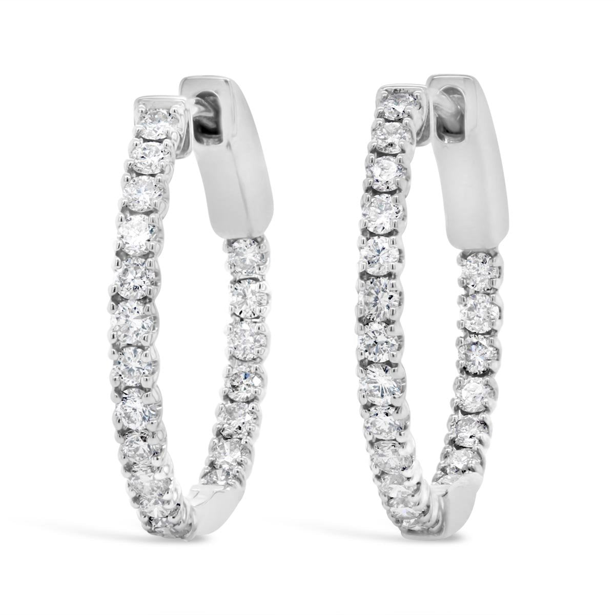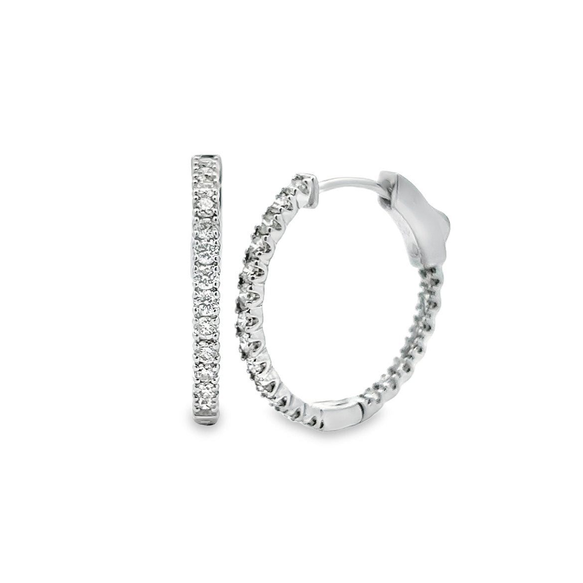 White Gold Diamond Inside Outside Hoop Earrings - EDD6486