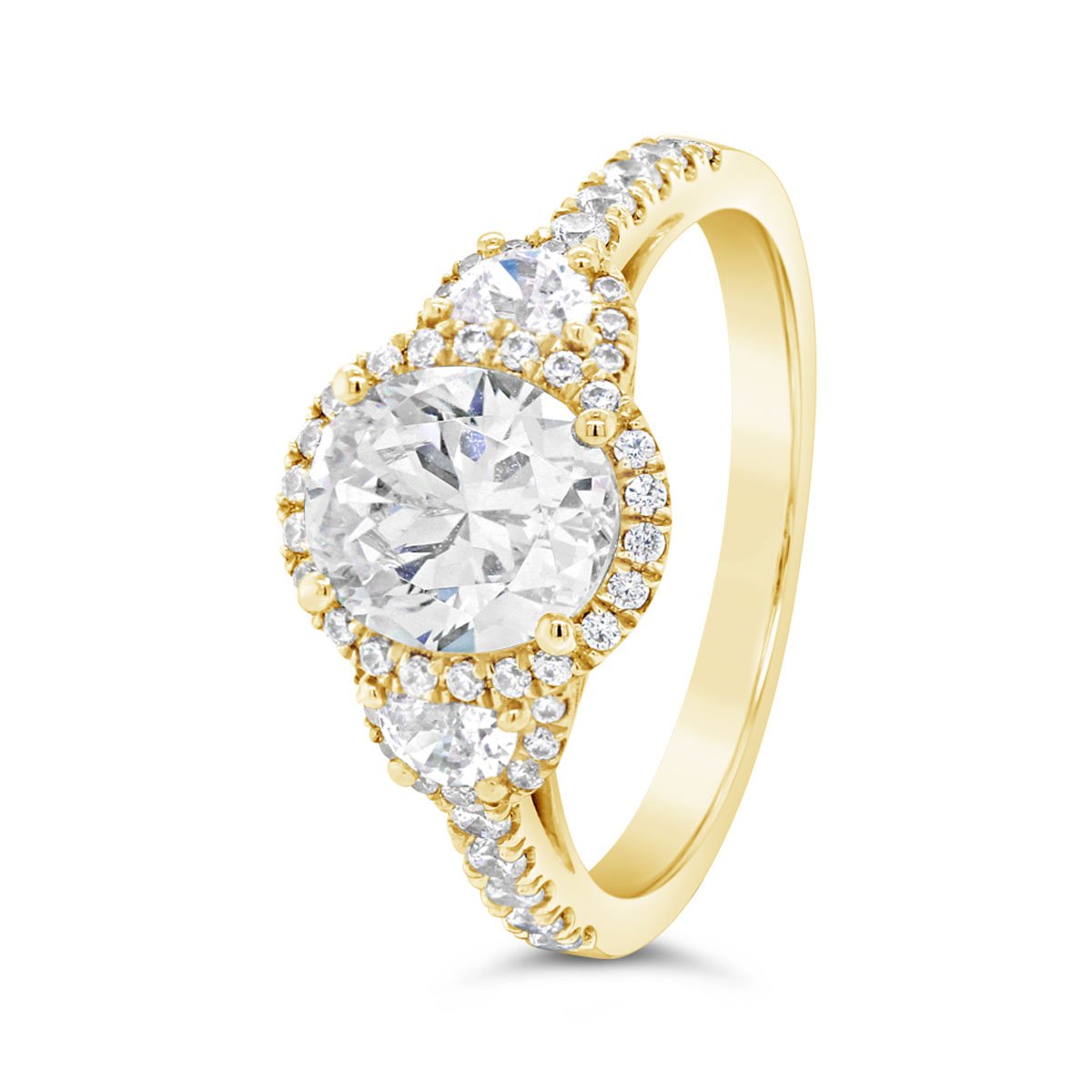 Three Stone Oval Halo Diamond Engagement Ring