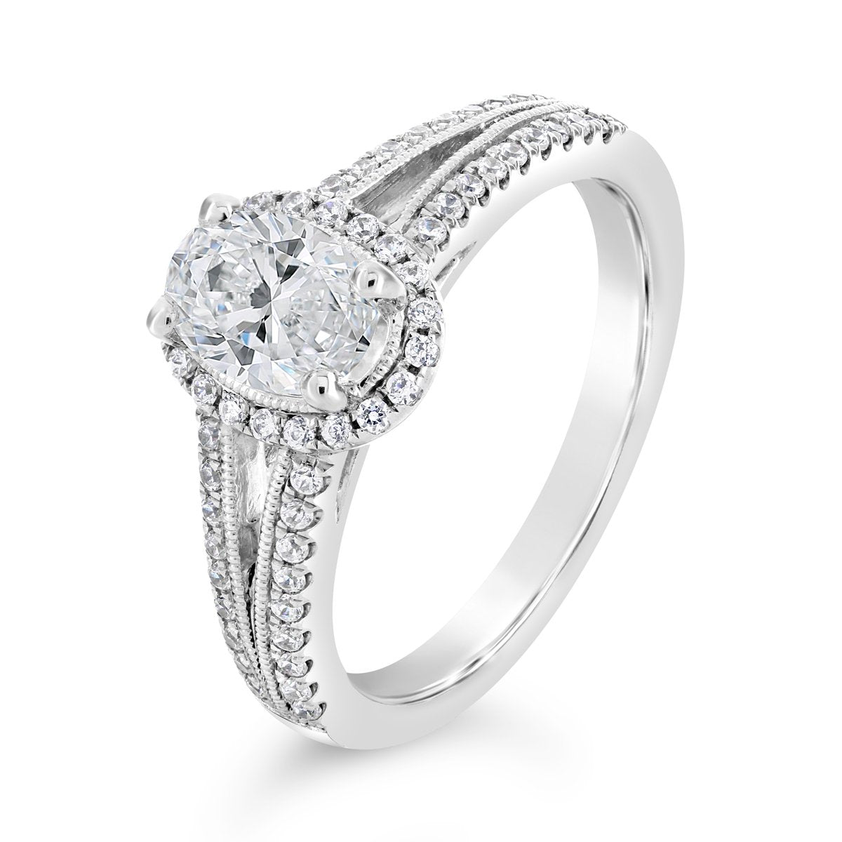 Style No. ACB041 Split Shank Ring Shown with 1.00 ct Oval Center Diamond & Milgrain Finish (Center Diamond Sold Separately)