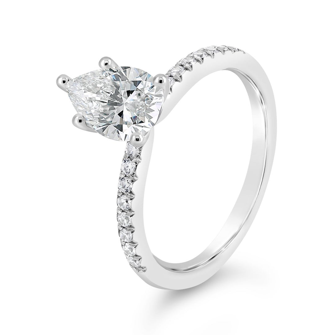 Pear shape engagement rings come in a variety of styles, settings, and metal options to suit every personality and aesthetic. Here are some popular styles: