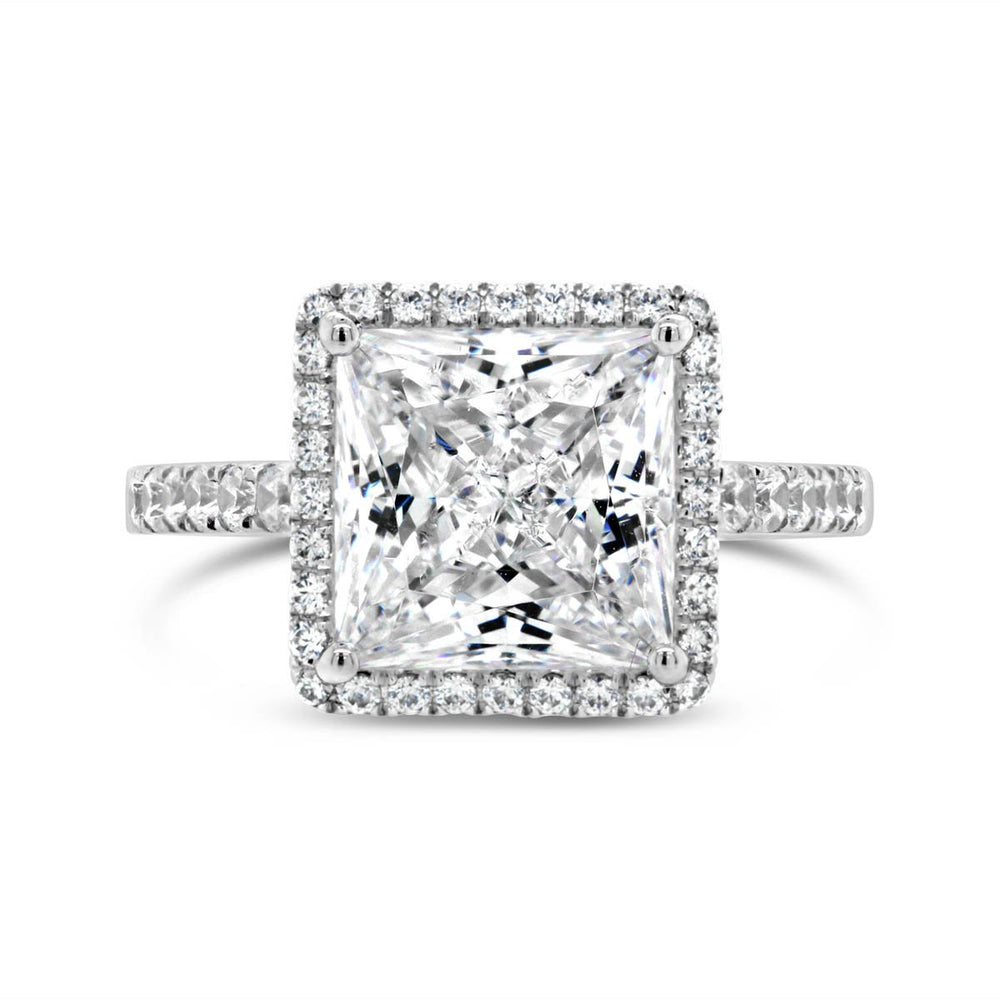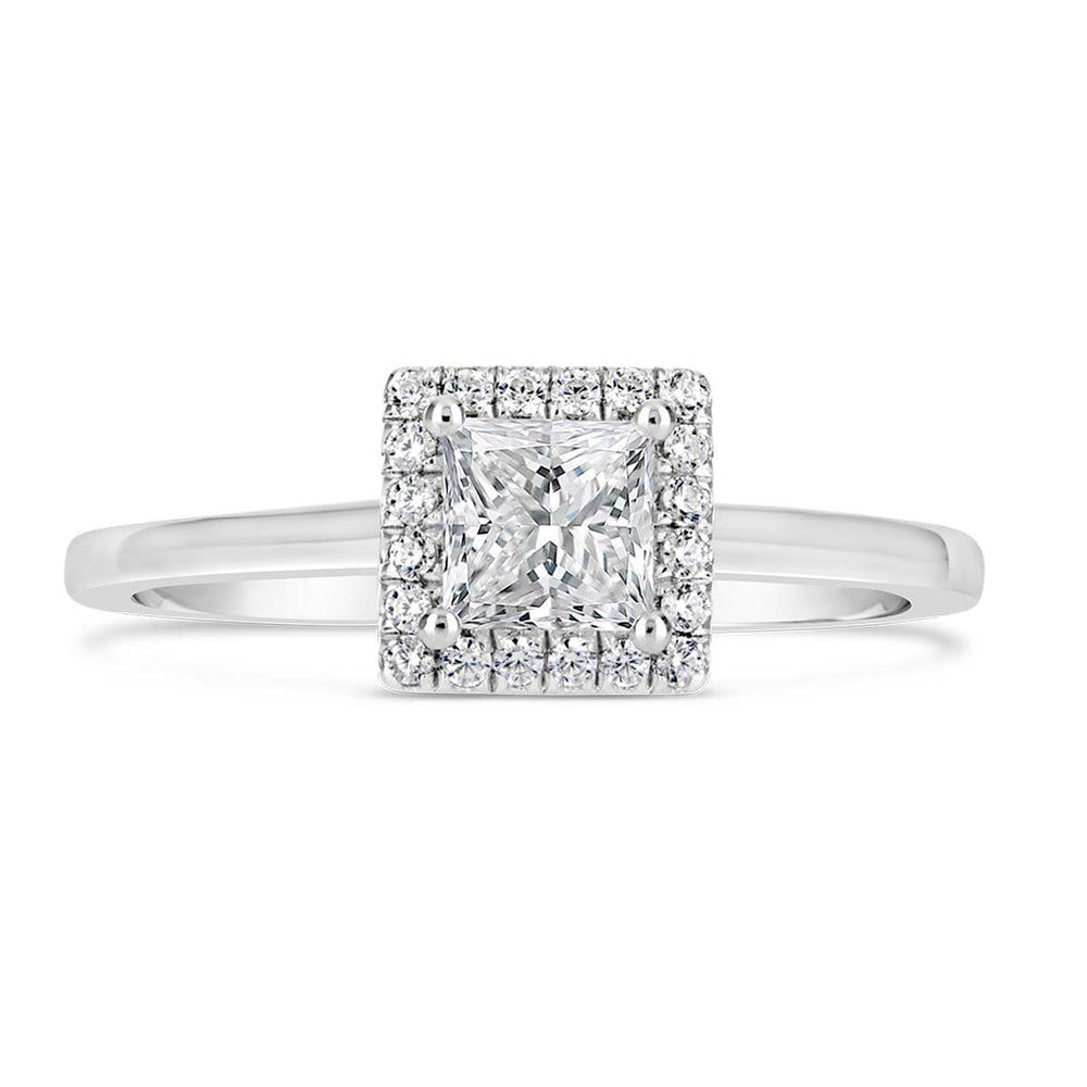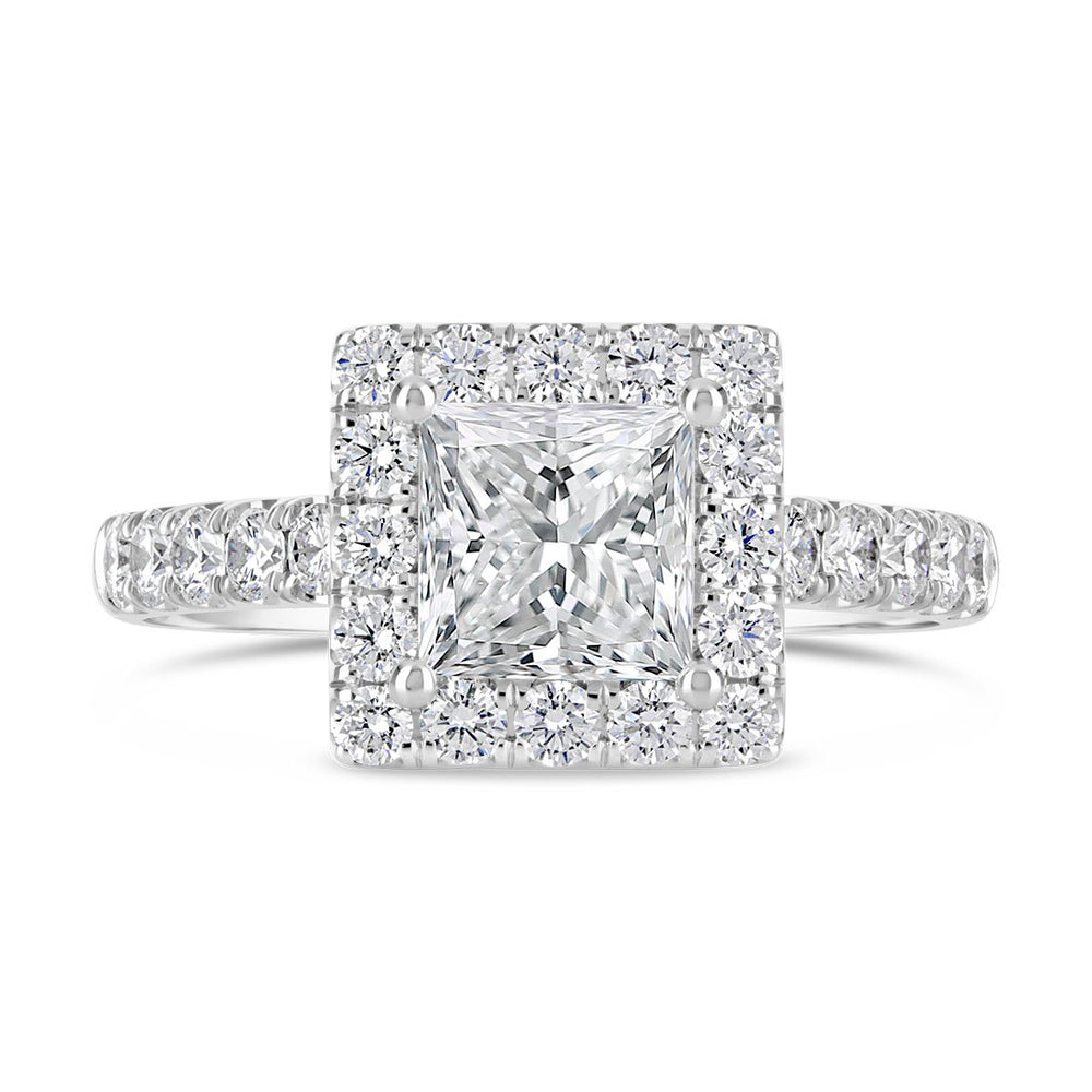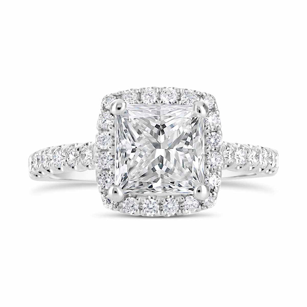 • Halo Princess Cut Engagement Rings – Adds extra brilliance and presence with a border of round diamonds