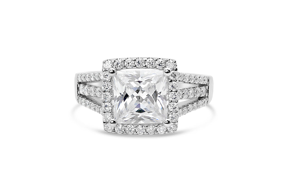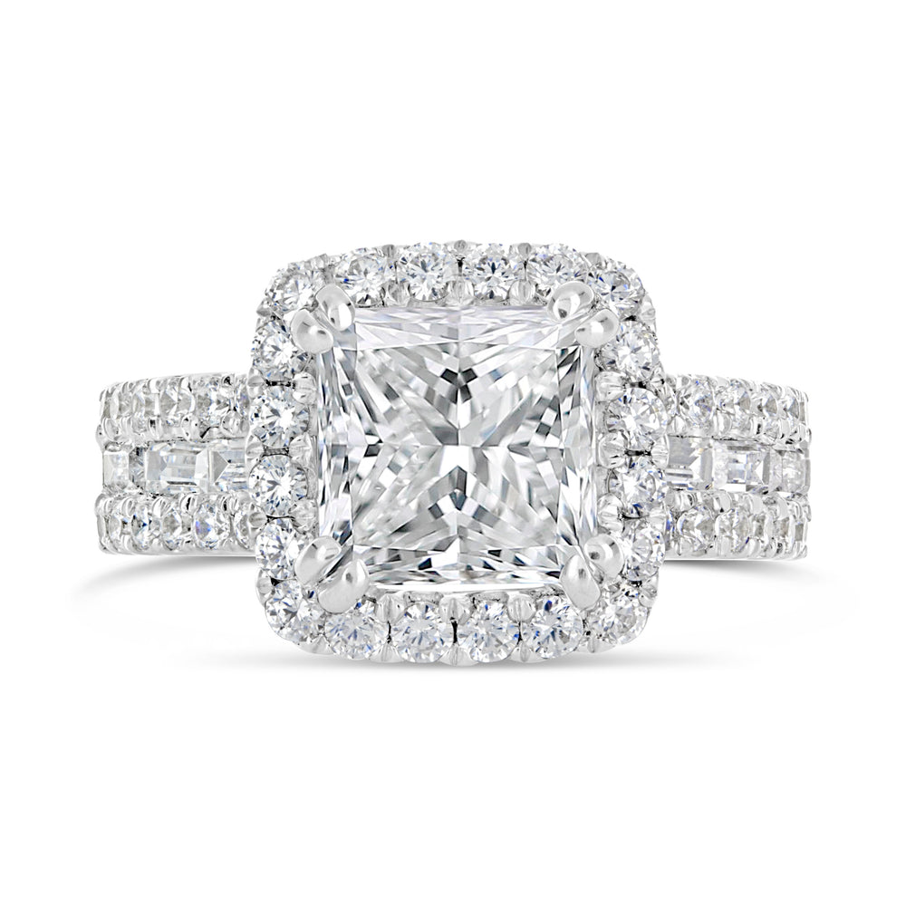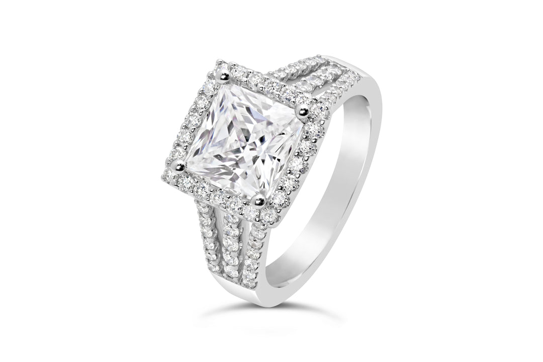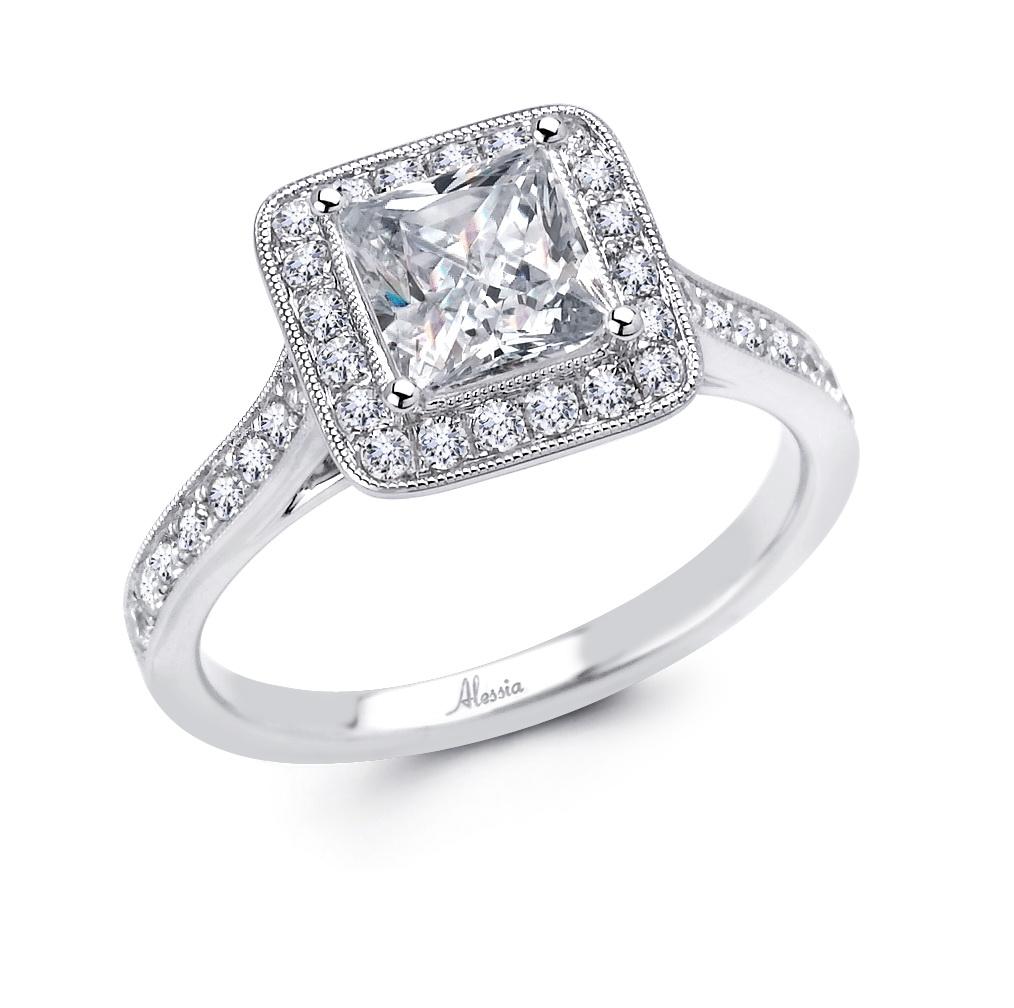 • Halo Princess Cut Engagement Rings – Adds extra brilliance and presence with a border of round diamonds