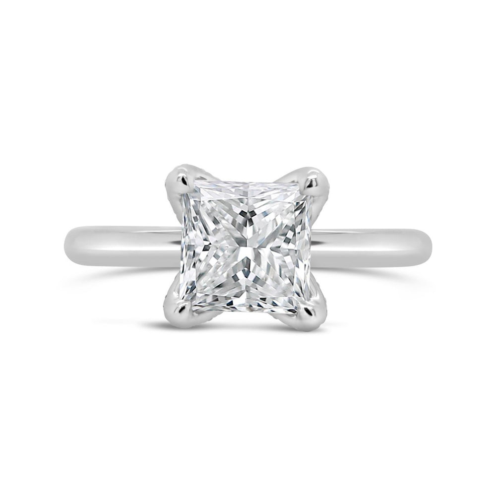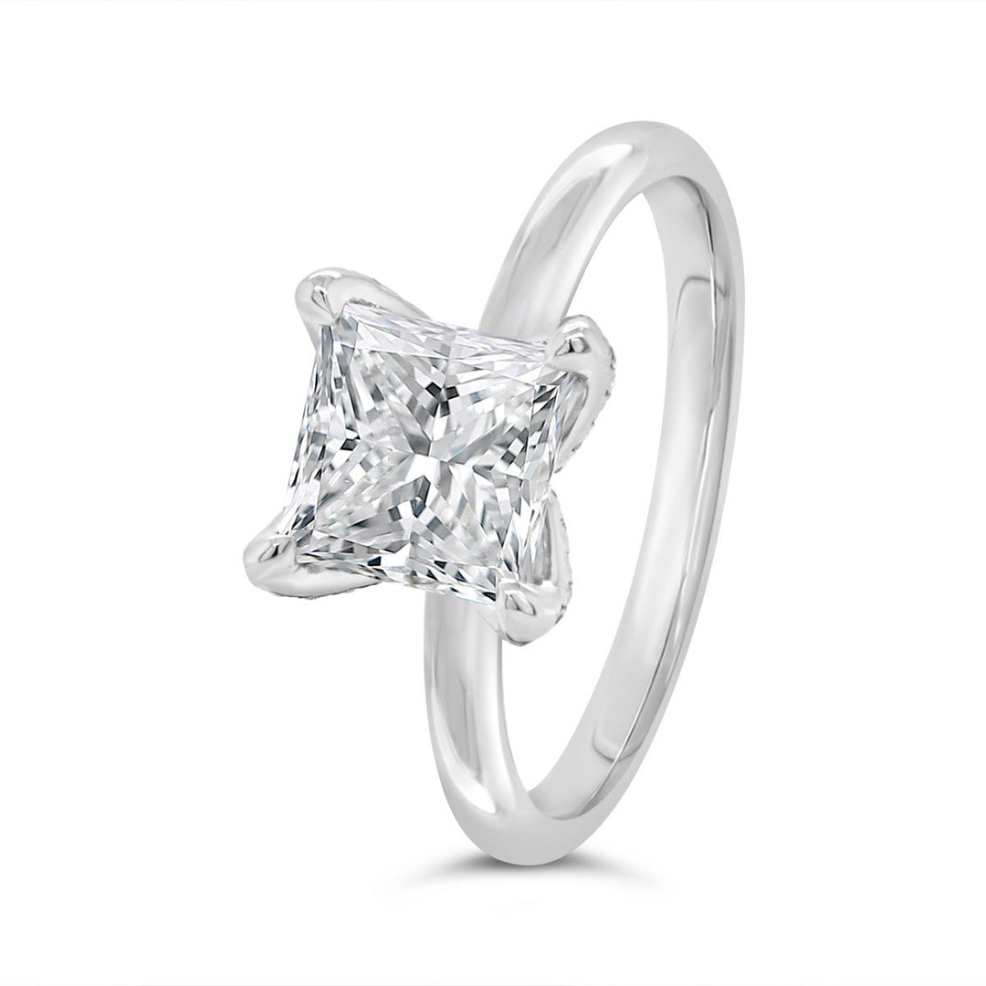 Our rings can be set with natural or lab created princess cut diamonds, available in a range of carat weights and clarity grades.