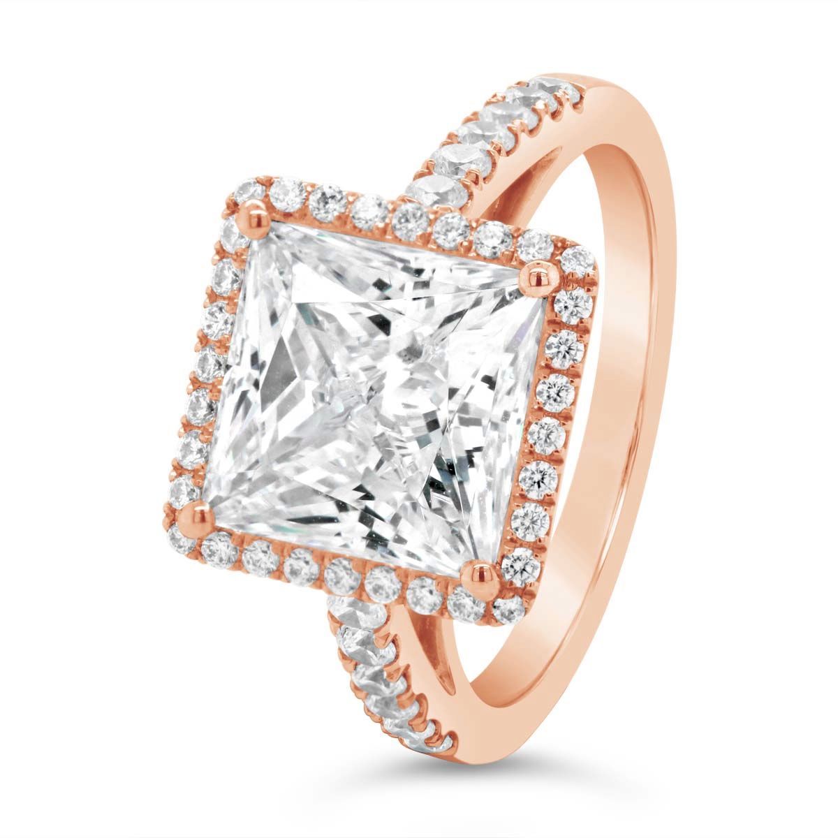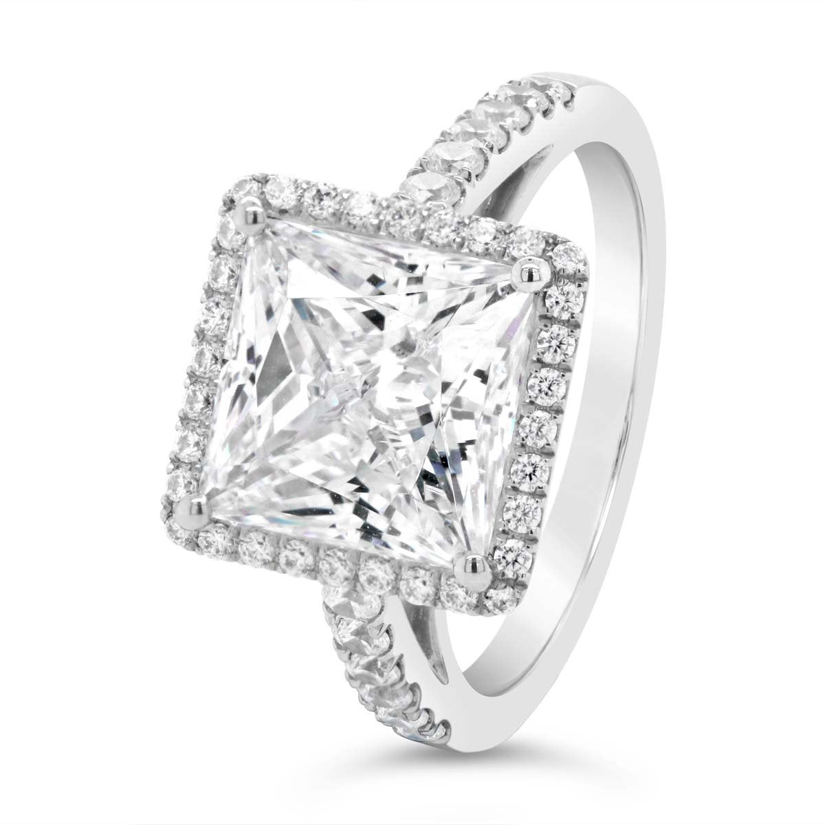Princess Cut Halo Diamond Engagement Ring shown with a 4.00 ct. center princess cut diamond. (Center Diamond Sold Separately)