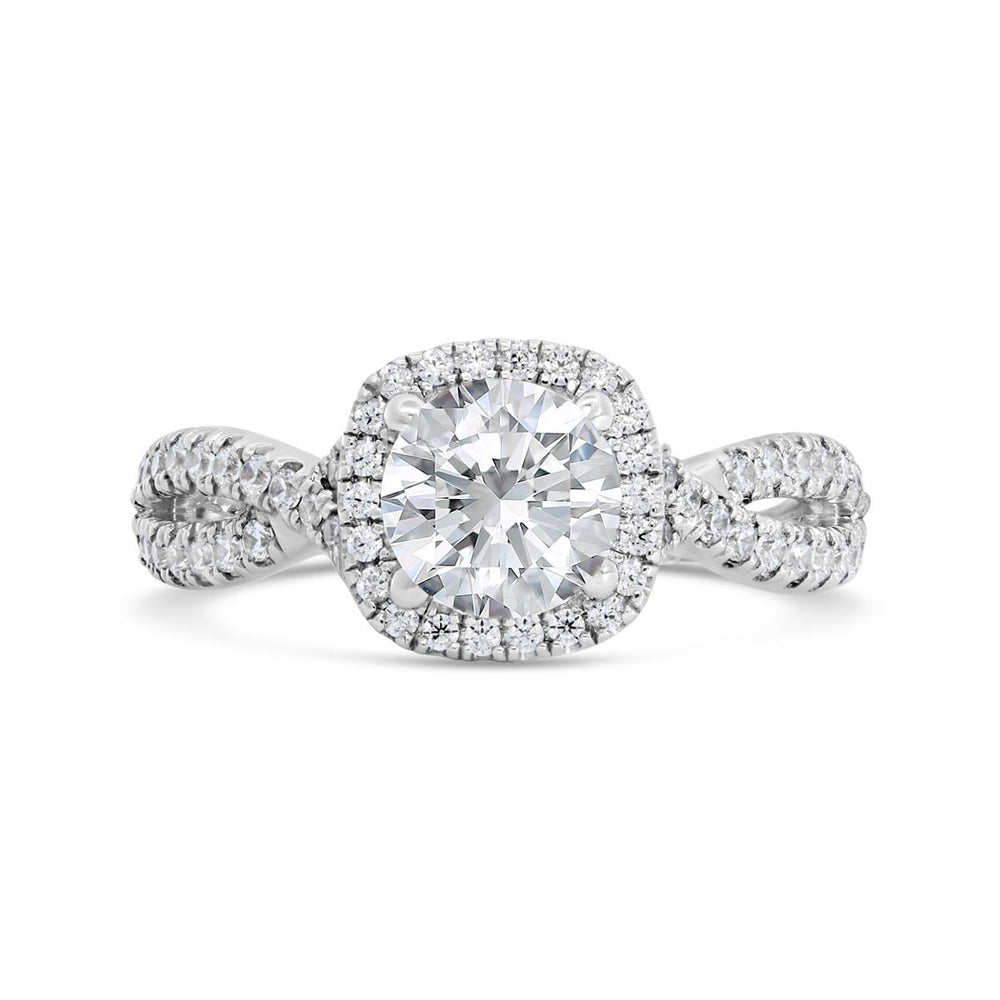 Cross Over Cushion Shape Halo Diamond Engagement Ring - N0050