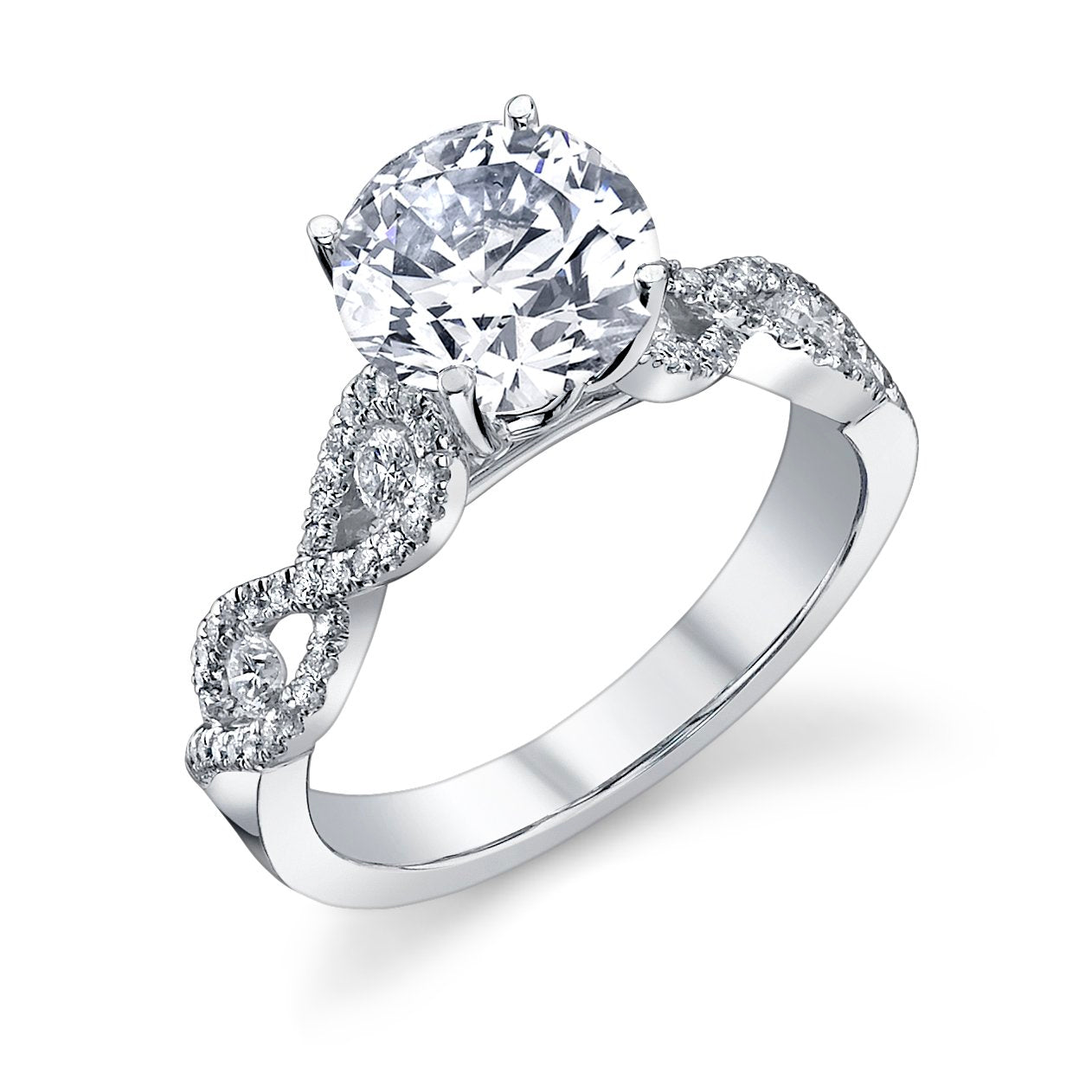 Style No. CR1380 Cross Over Diamond Engagement Ring Shown with 1.00ct Round Diamond (Center Diamond Sold Separately)
