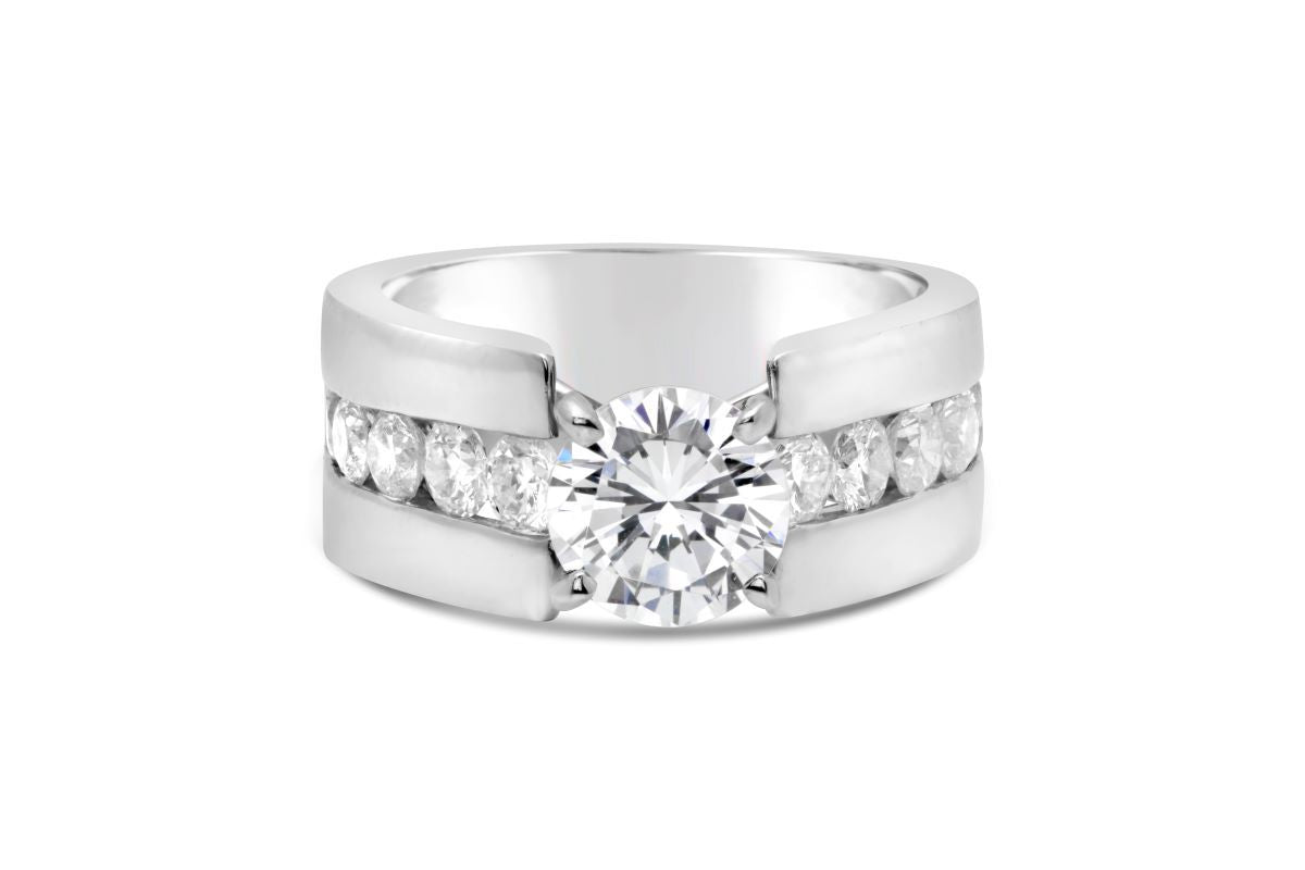 Style No. R1058 Wide Band Engagement Ring with Channel Set Side Diamonds (Center Diamond Sold Separately)