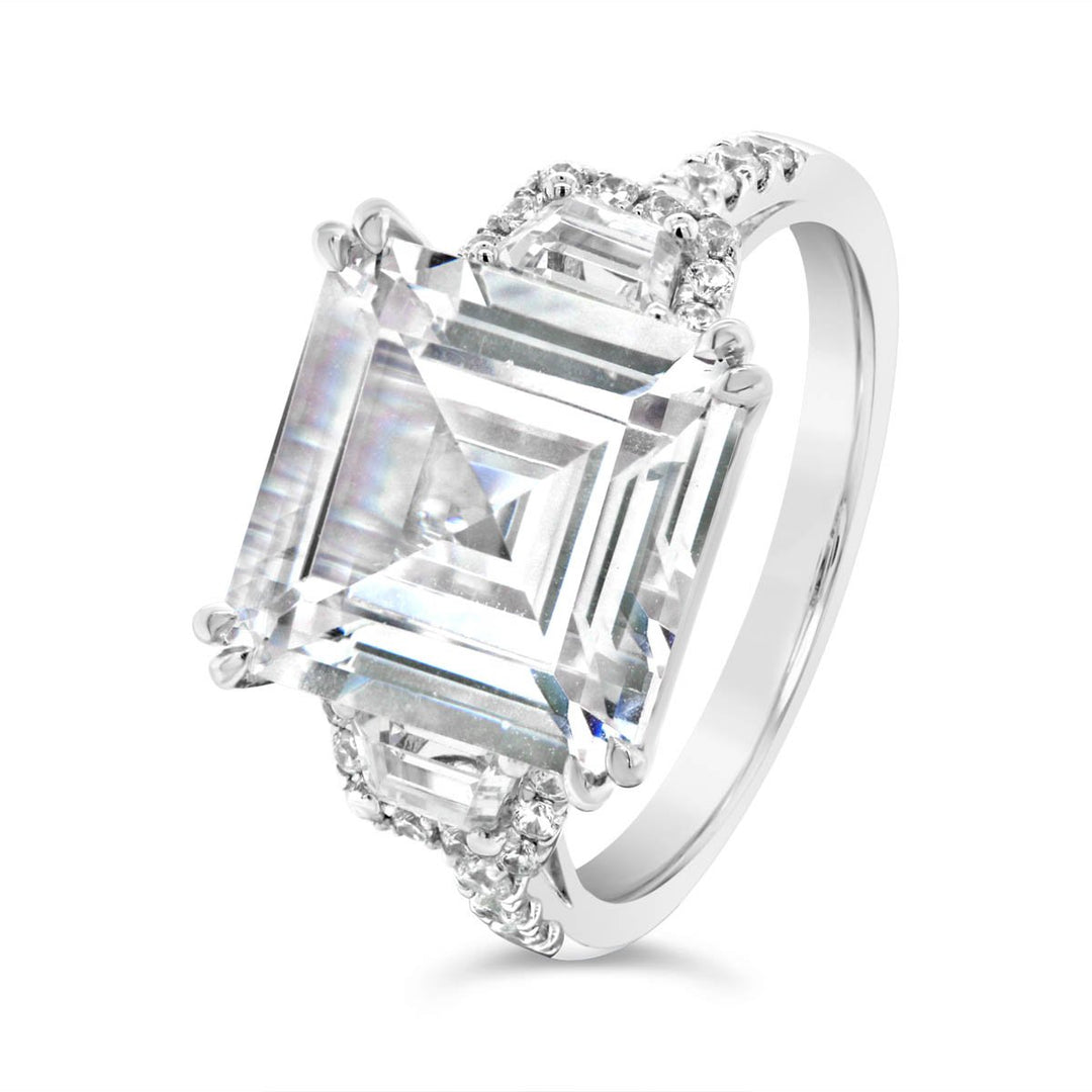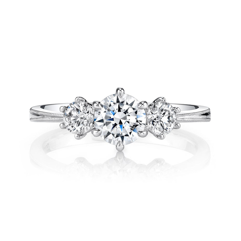 A three-stone engagement ring is a timeless and elegant choice that symbolizes the past, present, and future. The center stone often represents the present, while the side stones can symbolize the past and future. This design offers a unique and meaningful way to express love and commitment. The Diamond Guys offer a wide range of customization options for our three-stone engagement rings. From the center stone cut to side stone choices you can create a truly personalized piece that reflects your individual style and preferences.