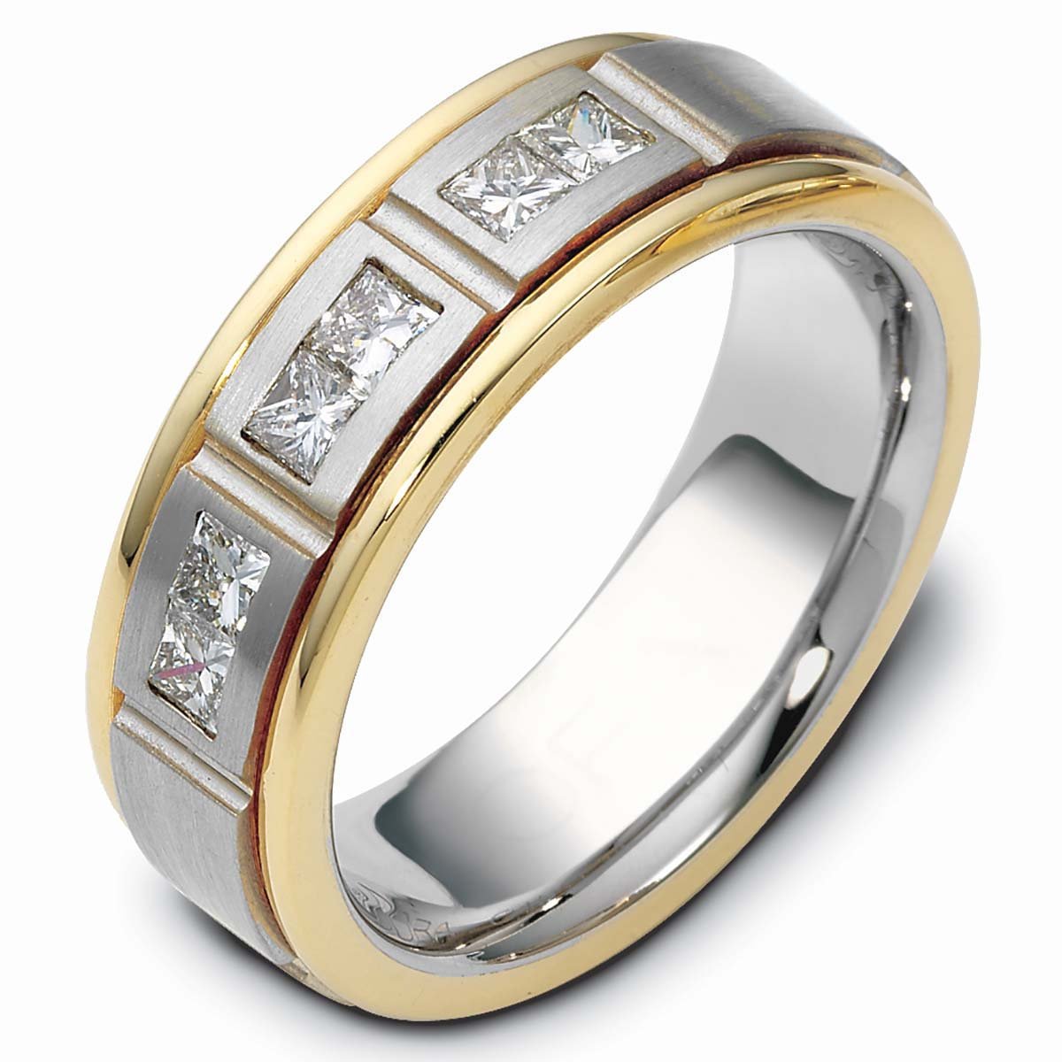 Two Tone Gold & Princess Cut Diamond Men's Wedding Band - 1564
