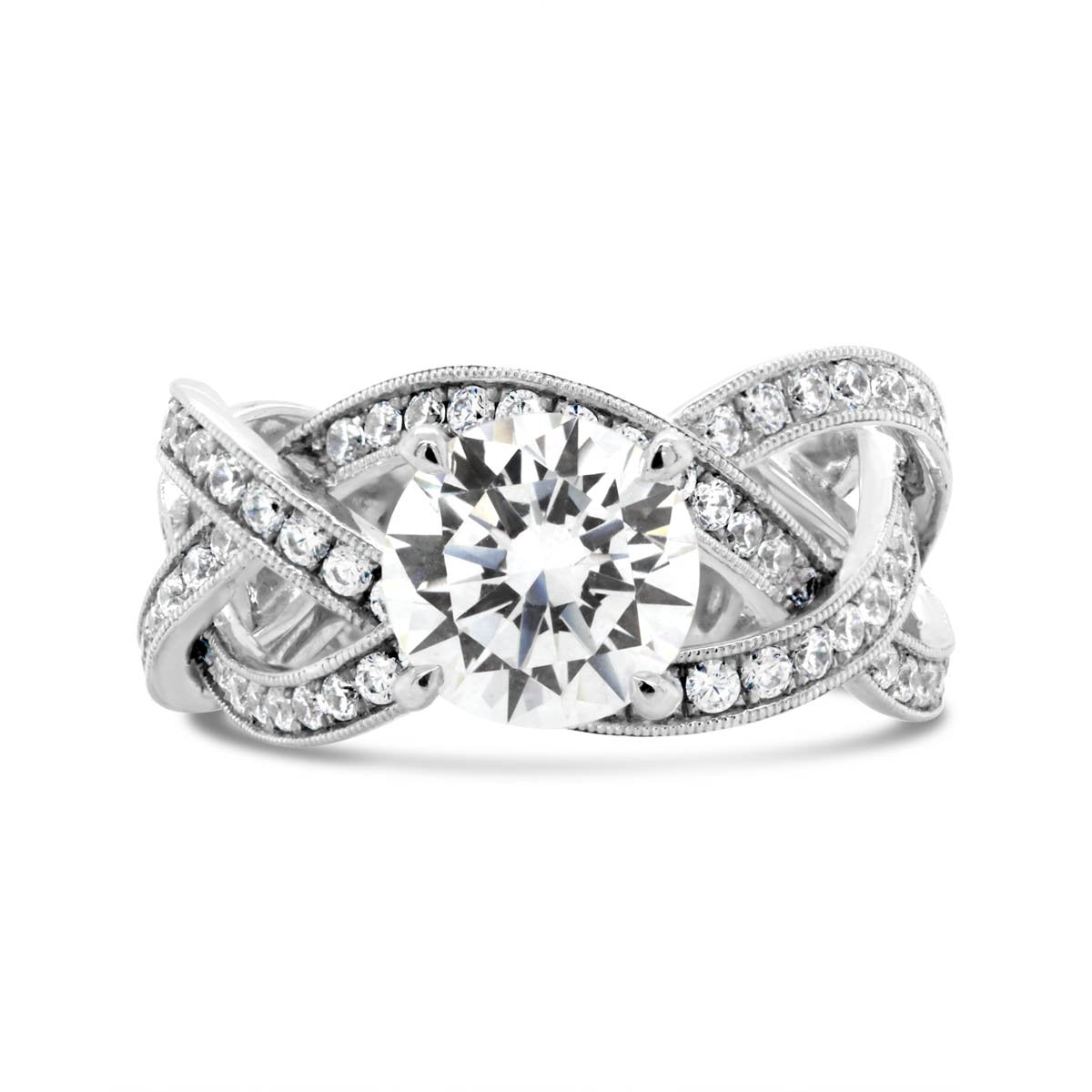 Cross Over Diamond Engagement Ring with Milgrain Finish - YJA0796R