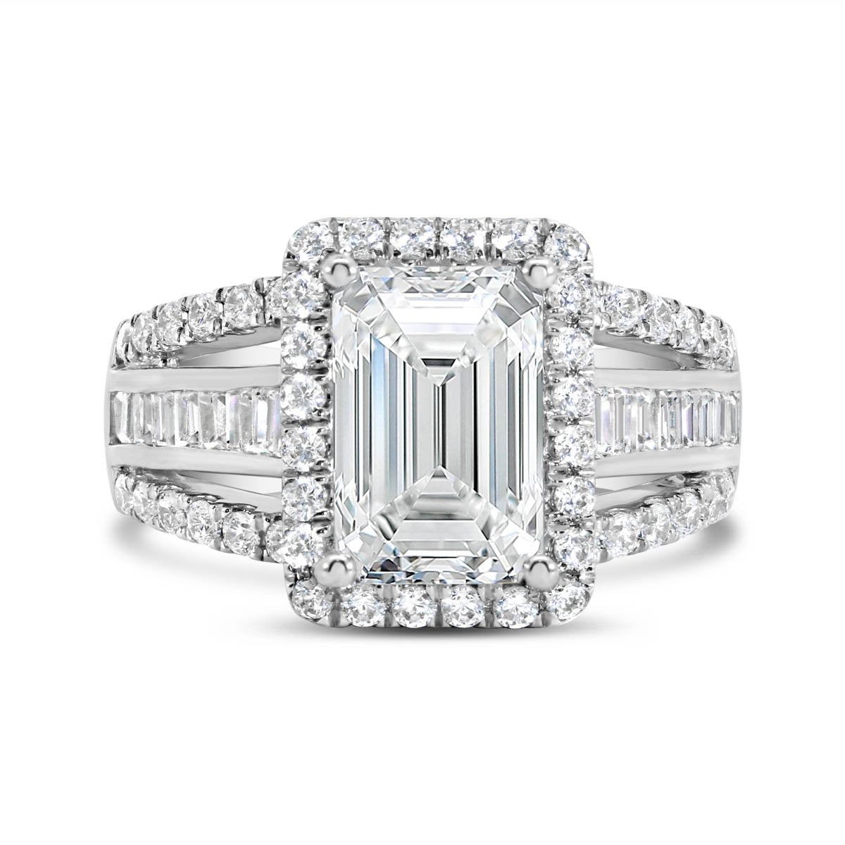 Wide Band Halo Diamond Engagement Ring with Split Shank