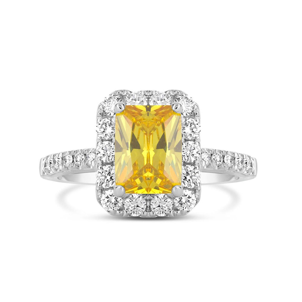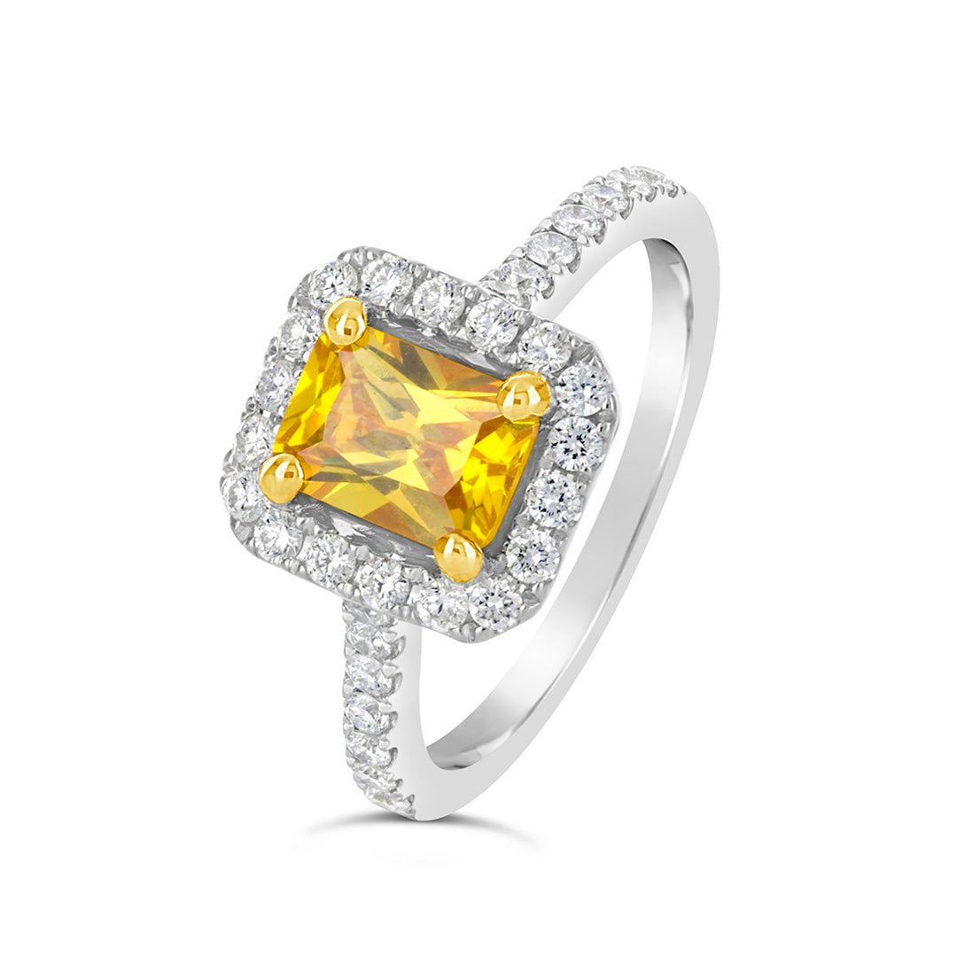 - Yellow Diamond Halo Rings – Framed with white diamonds to enhance contrast and sparkle
