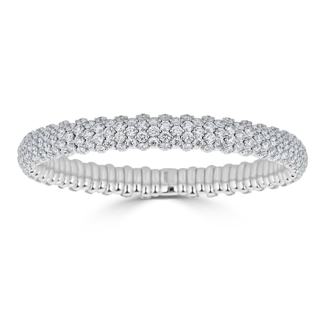 White Gold Italian Single Row Diamond Stretch Bangle - PU22-W