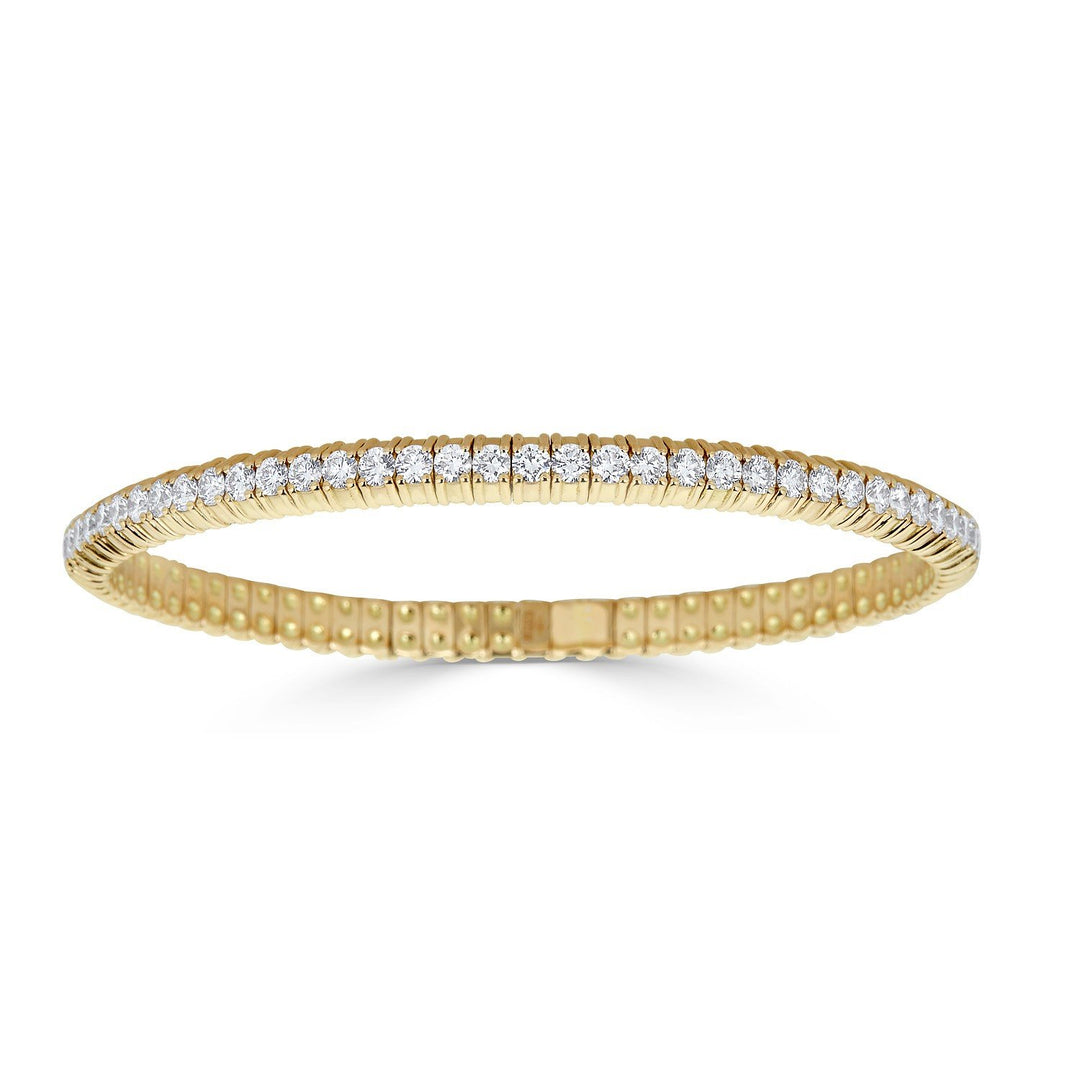 Yellow Gold Italian Single Row Diamond Stretch Bangle - PU22-Y